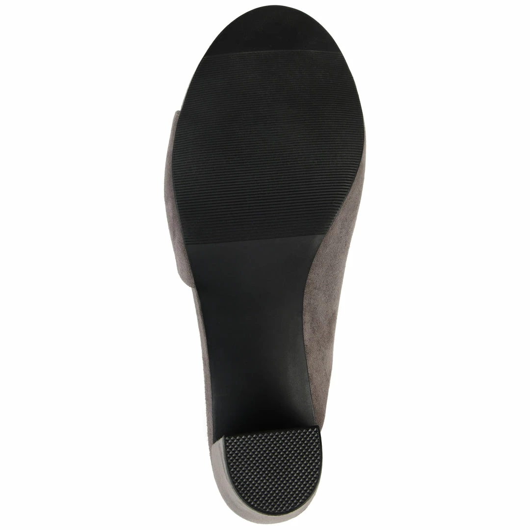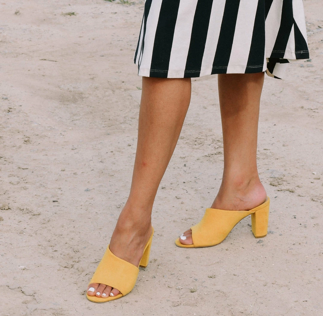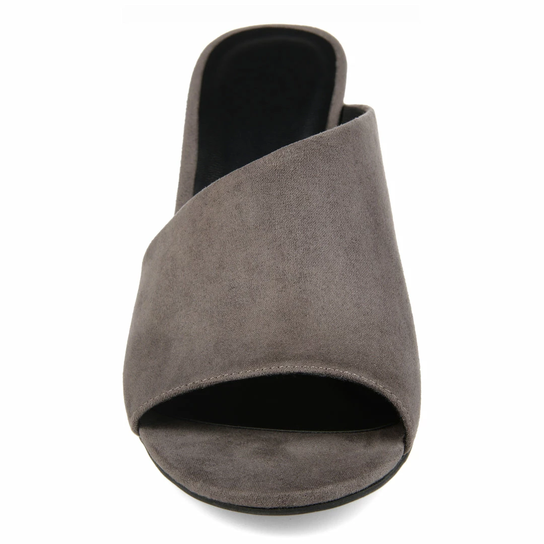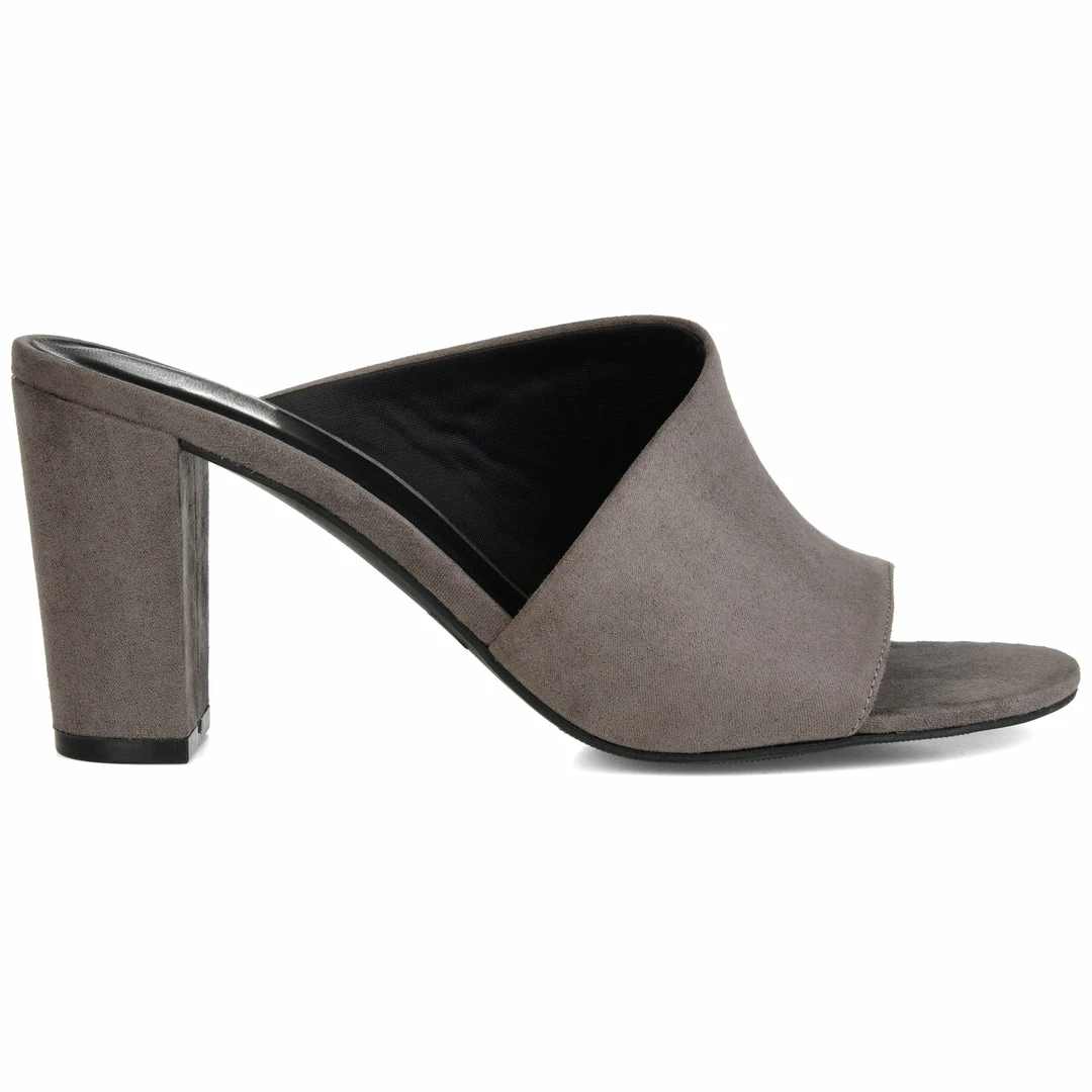 A covered block heel elevates this retro open-toe mule rendered with velvety vegan suede for a sassy look.