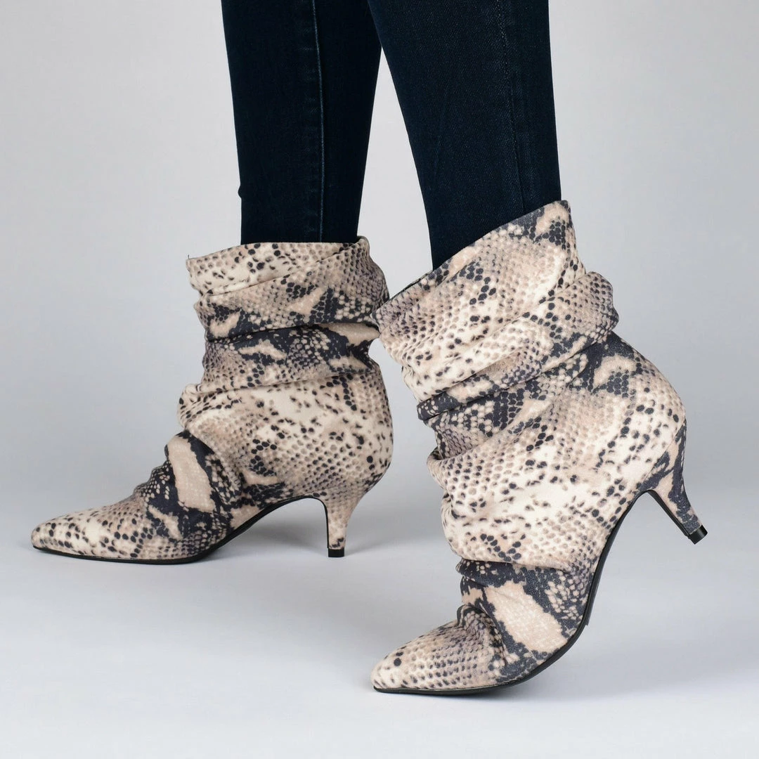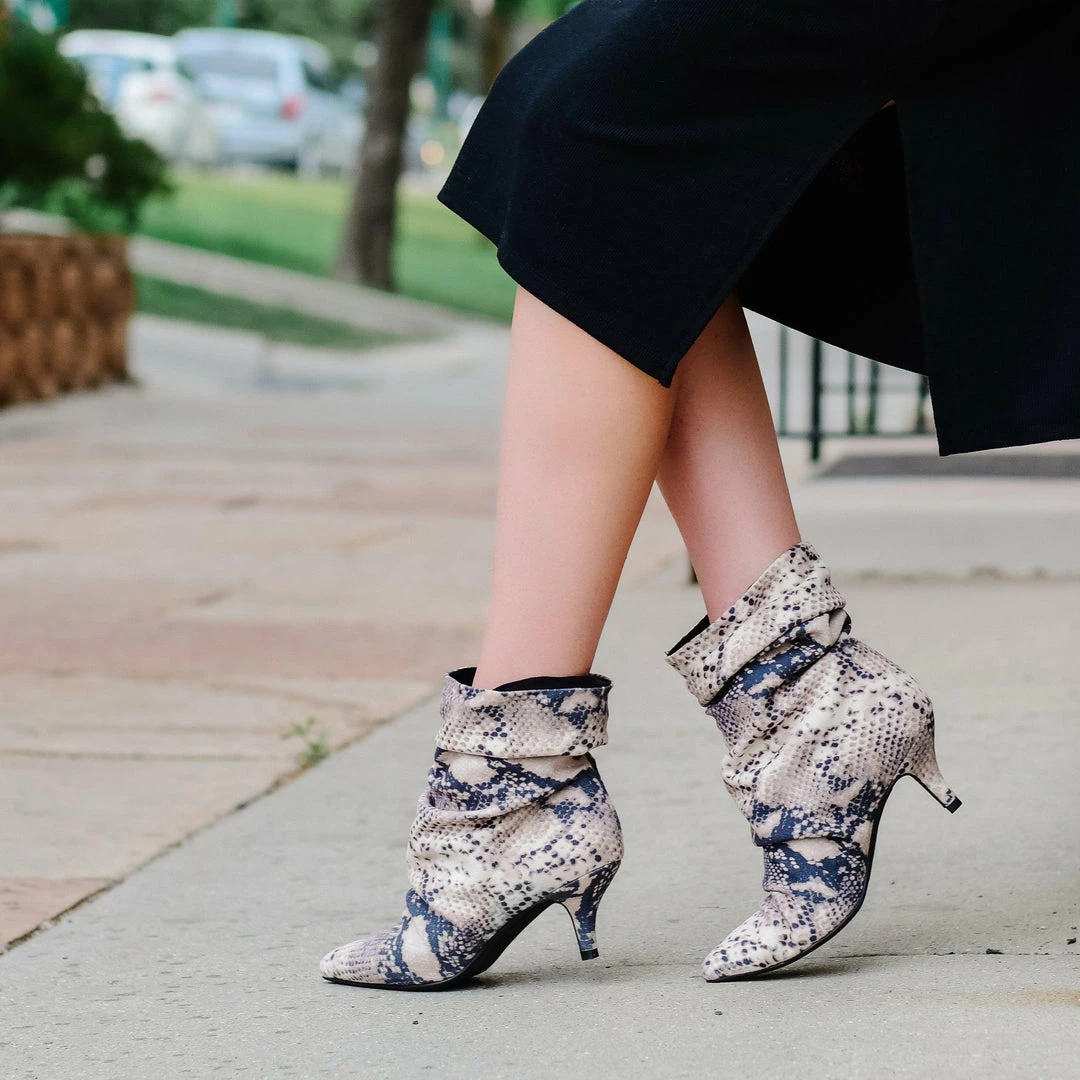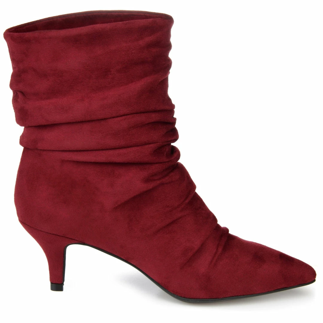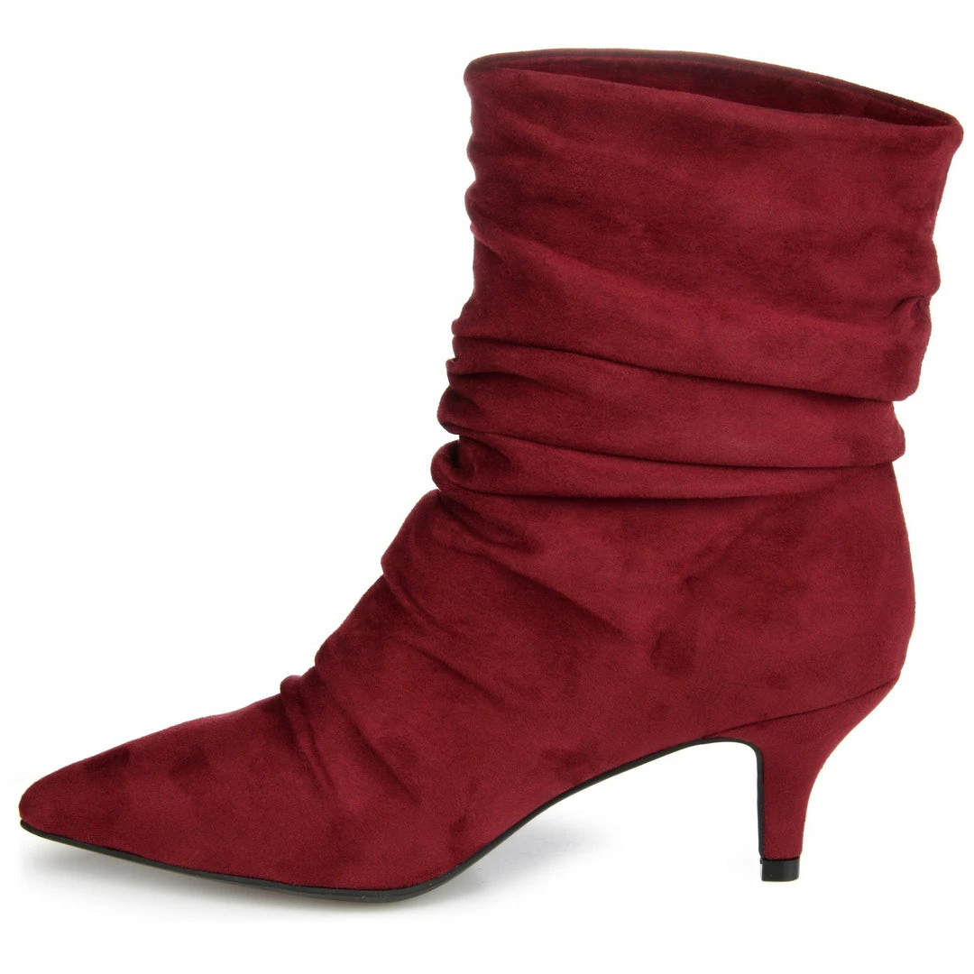 This pointed-toe bootie rendered with vegan leather uppers is all about modern minimalism. A dainty kitten heel and 4 mm Tru Comfort Foam™ footbed finish this pull-on design.