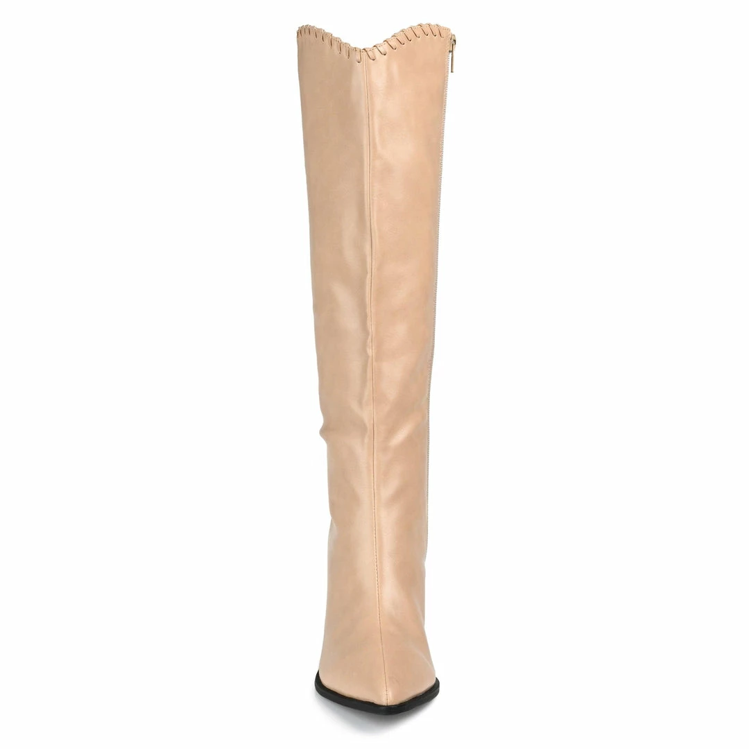 You’re sure to make a bold statement in this western chic knee-high boot detailed with a wide-calf and whipstitching.