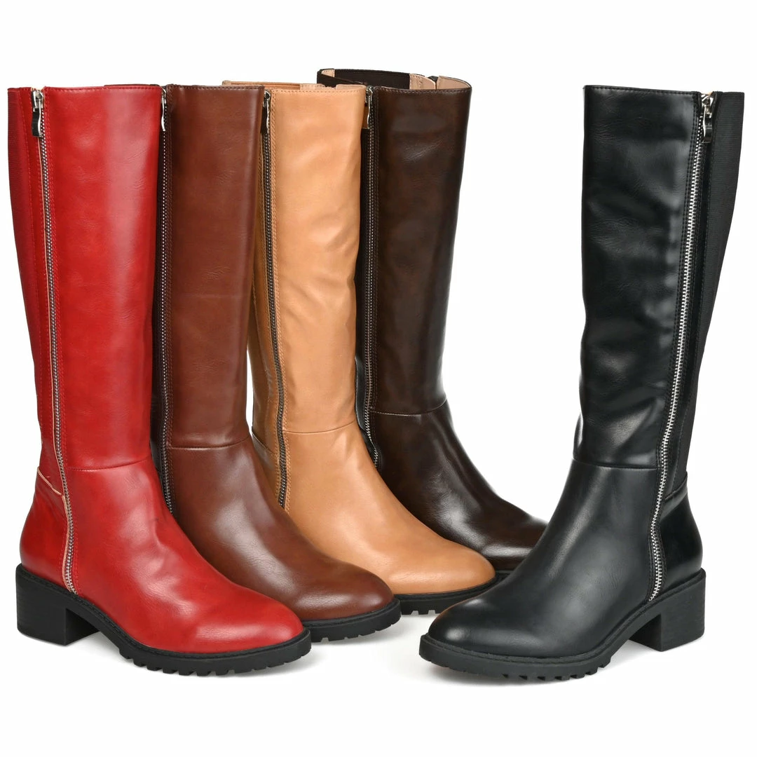This almond-toe boot is the offers comfort and style with its soft vegan leather uppers and wide-calf.