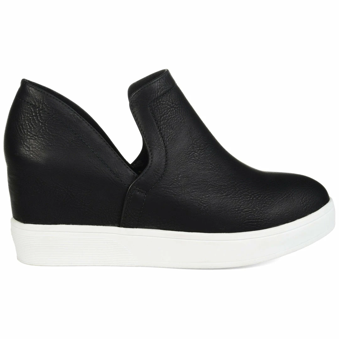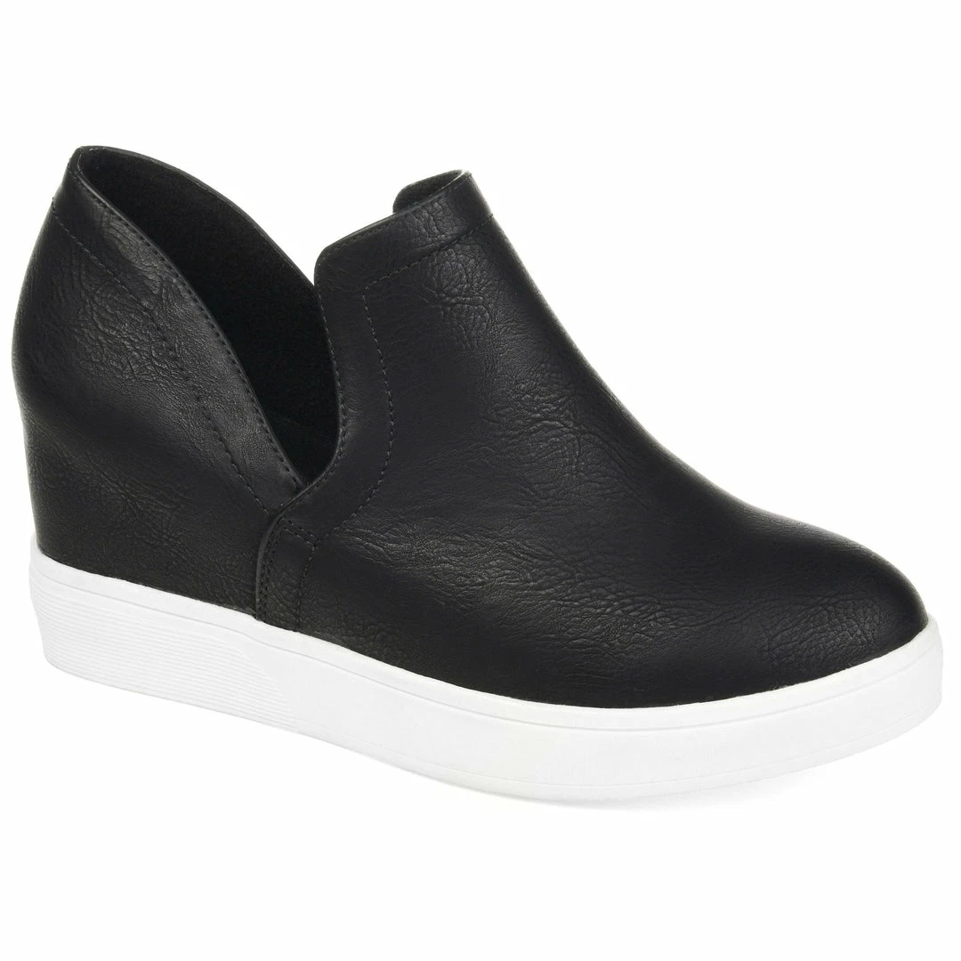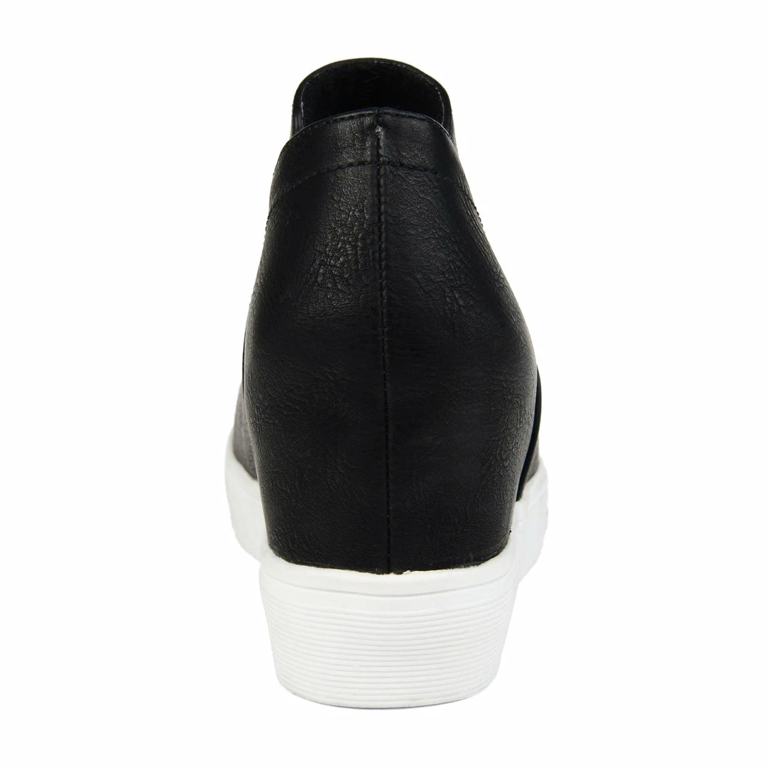 Add some fresh kicks to your wardrobe rotation with this easy slip-on vegan leather sneaker styled with a hidden wedge heel and deep-V notches at the sides.