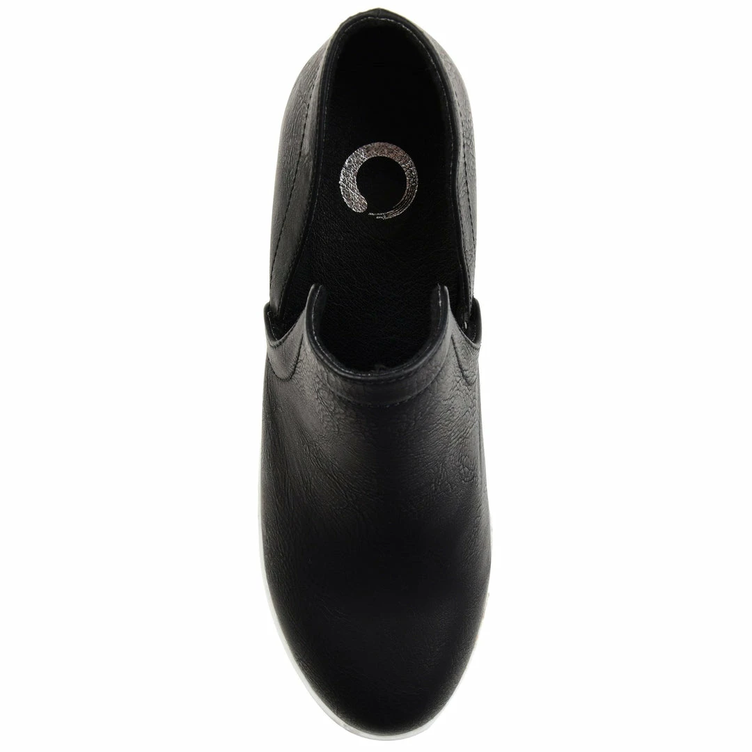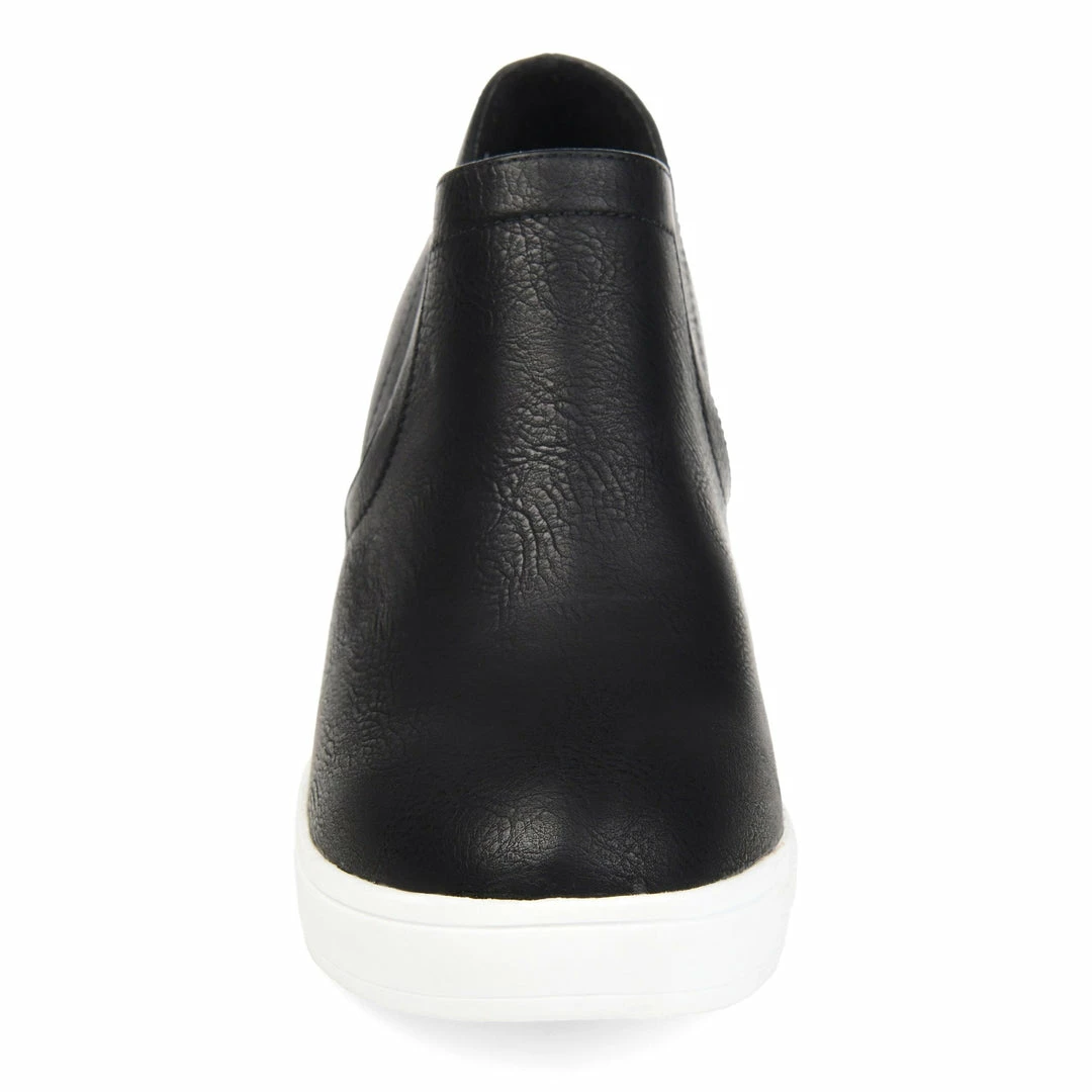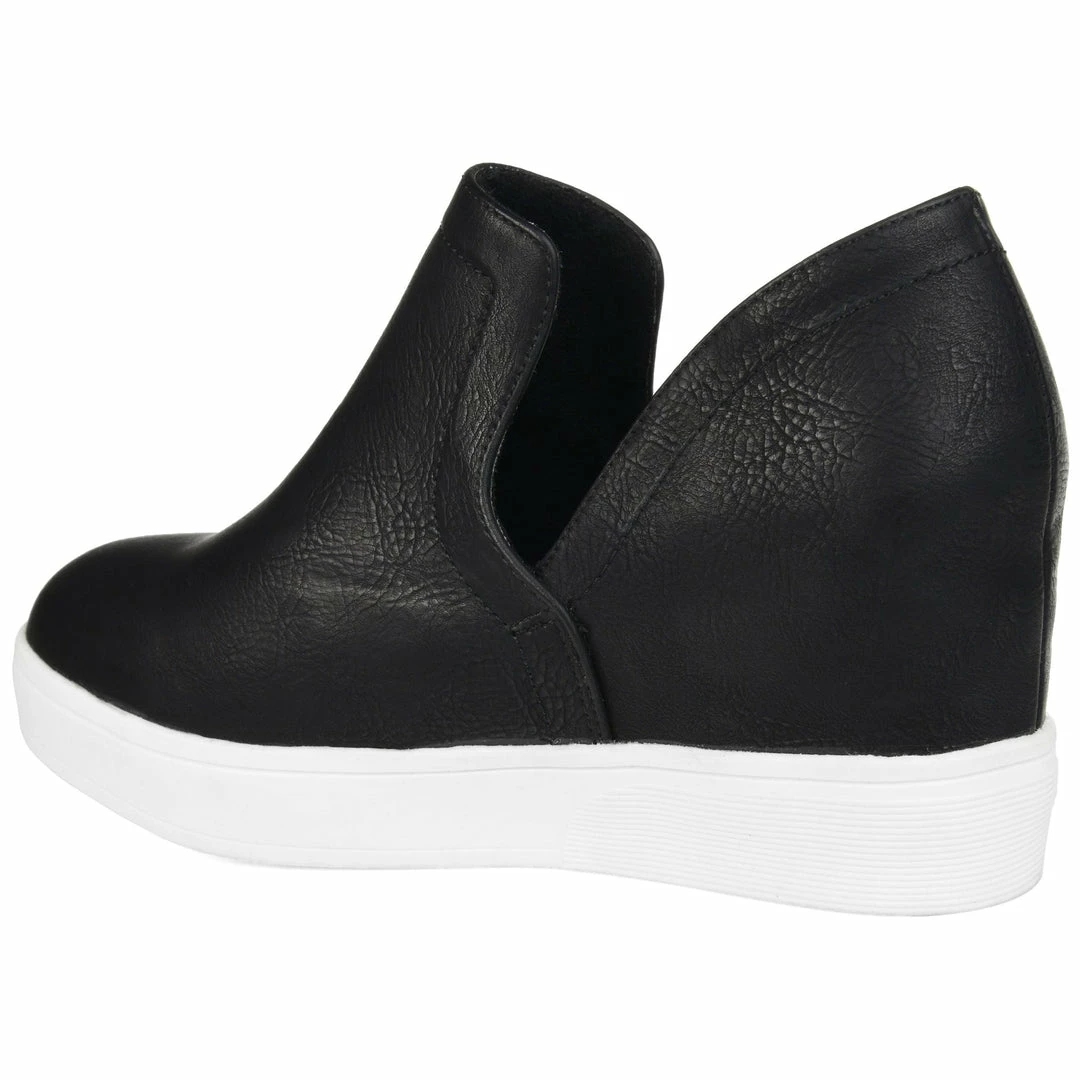 Add some fresh kicks to your wardrobe rotation with this easy slip-on vegan leather sneaker styled with a hidden wedge heel and deep-V notches at the sides.