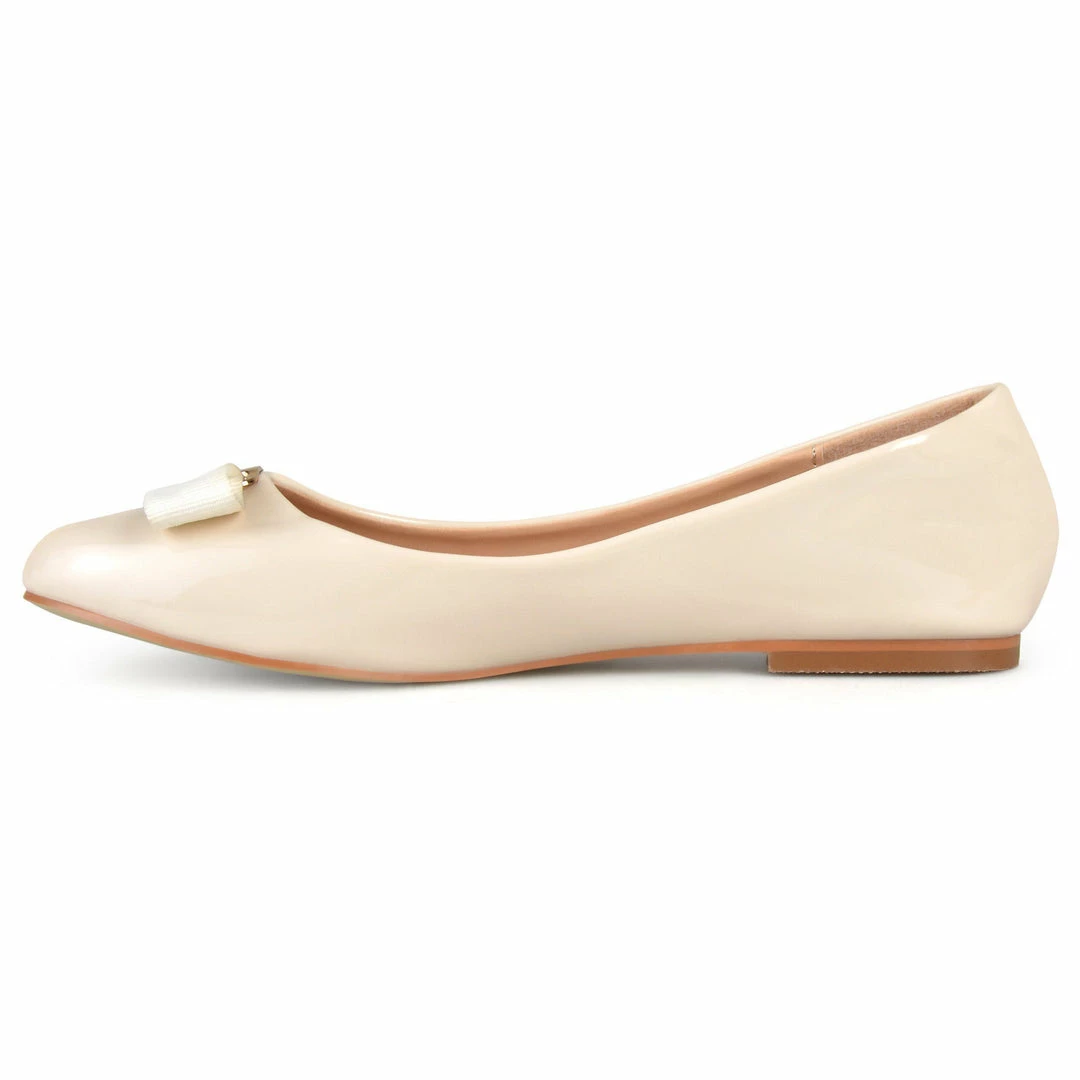 These charming ballet flats featuring vegan patent leather and a tiny bow.