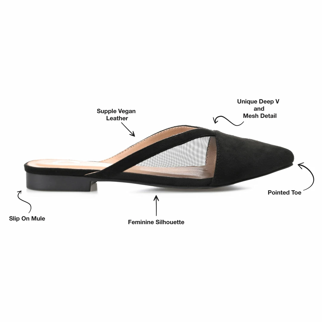 This posh mule flat is guaranteed to become your favorite go-to with a v-shaped topline and mesh accents.