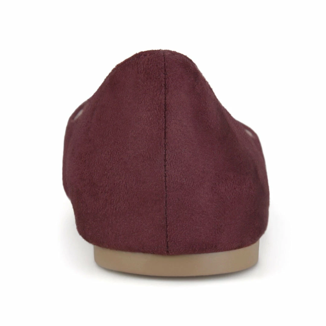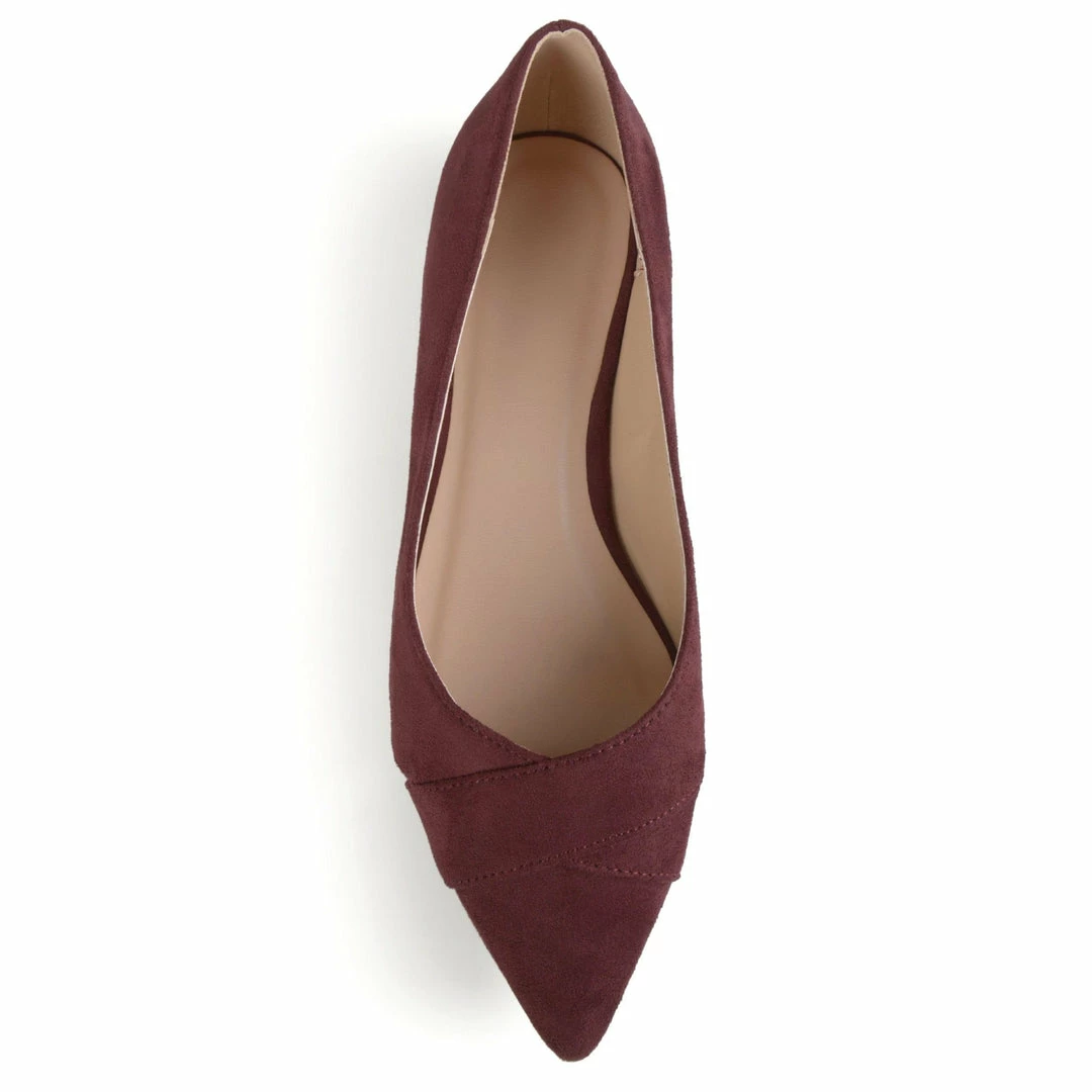A sweetheart topline and crisscross accent crown this pointed-toe vegan suede flat for a polished look you can turn to over and over.