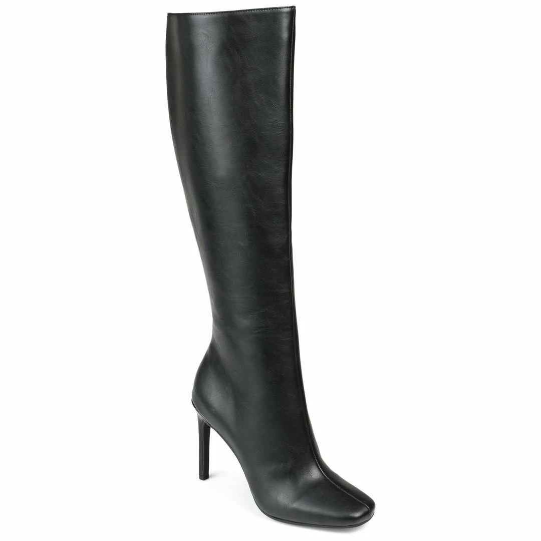 Take your boot collection to new heights with this square-toed boot detailed with a wide-calf.
