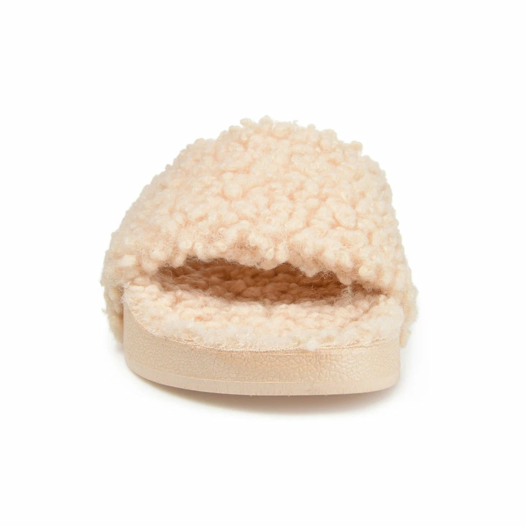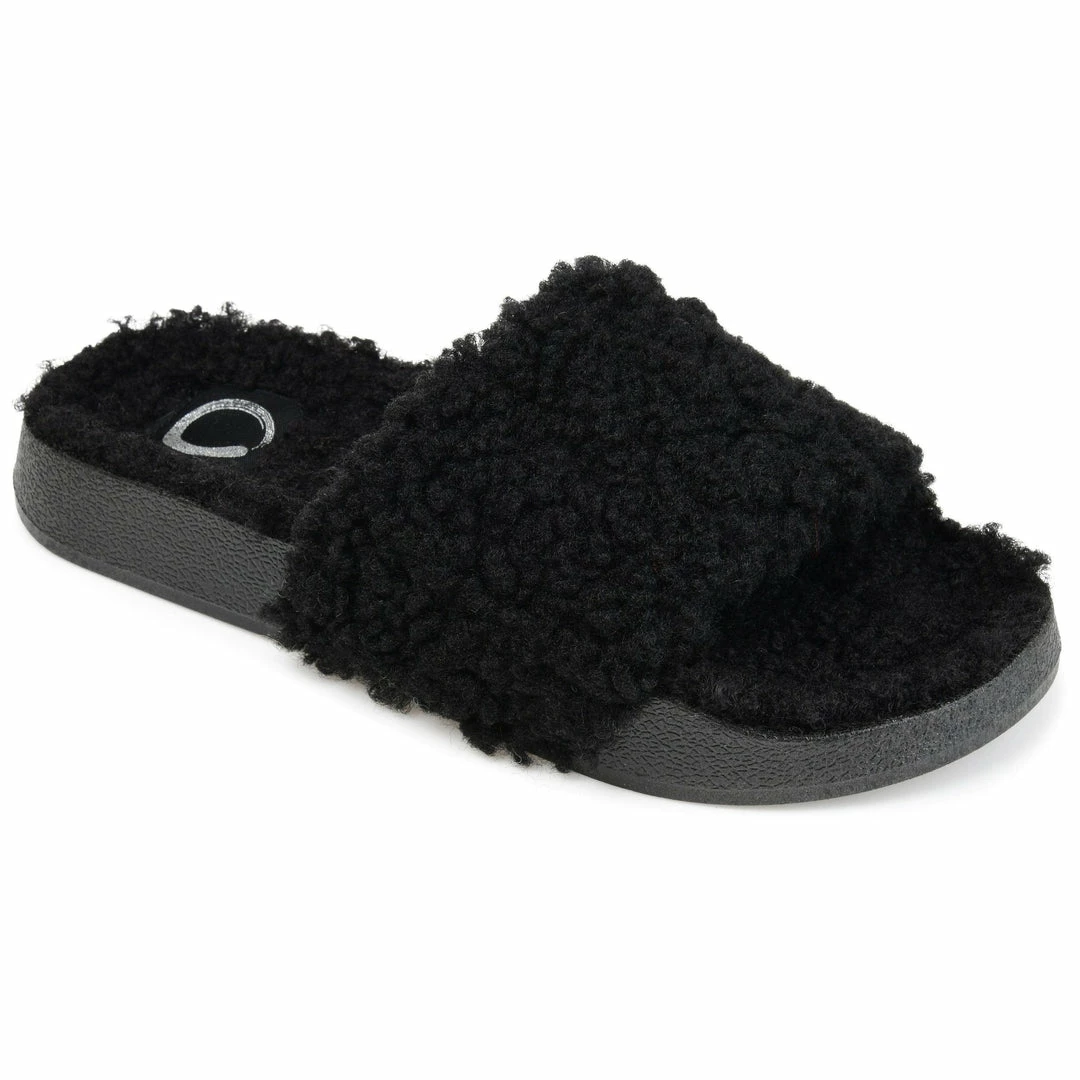 Work from home or recline in your favorite armchair in this slide with teddy bear faux fur that is as cuddly as it is cute.