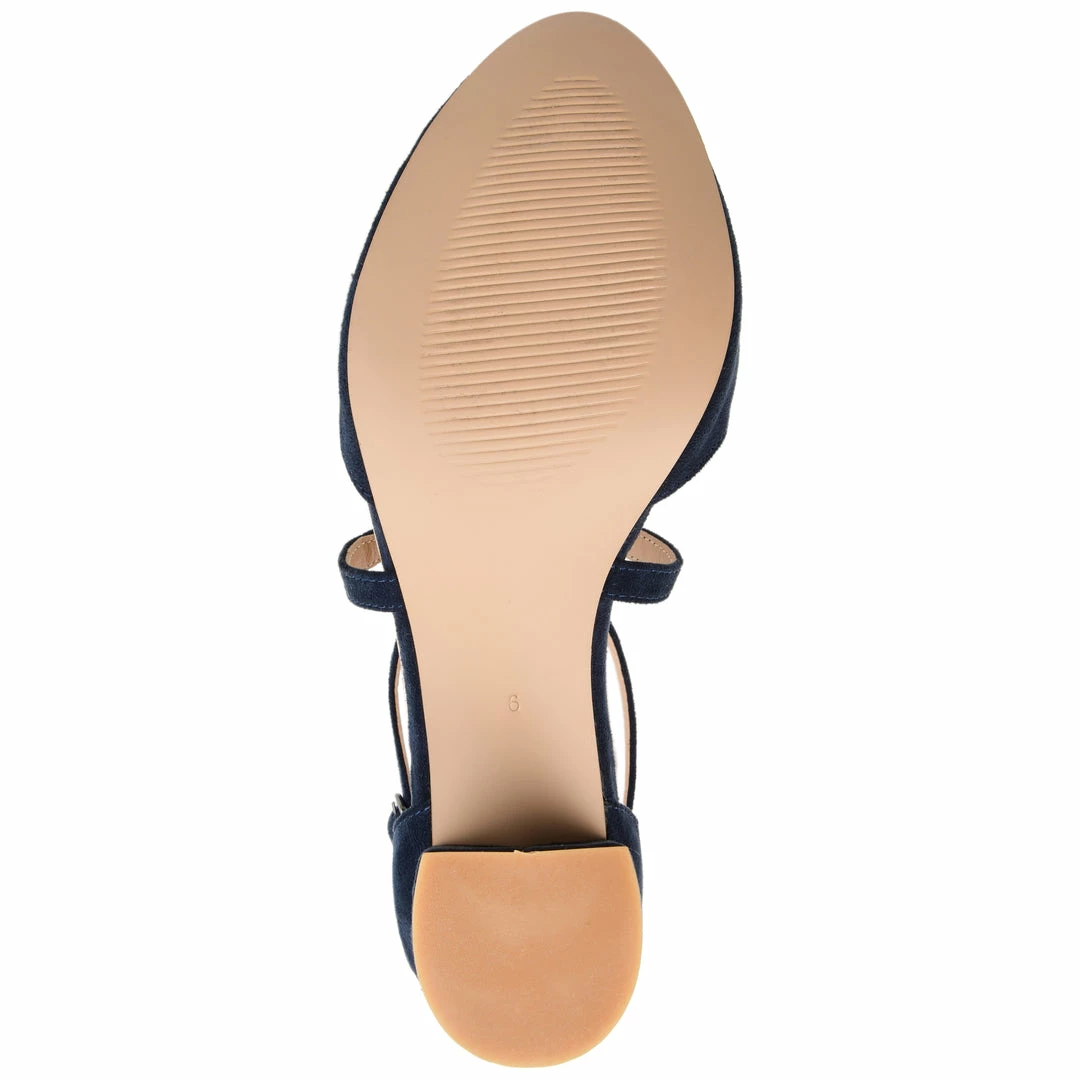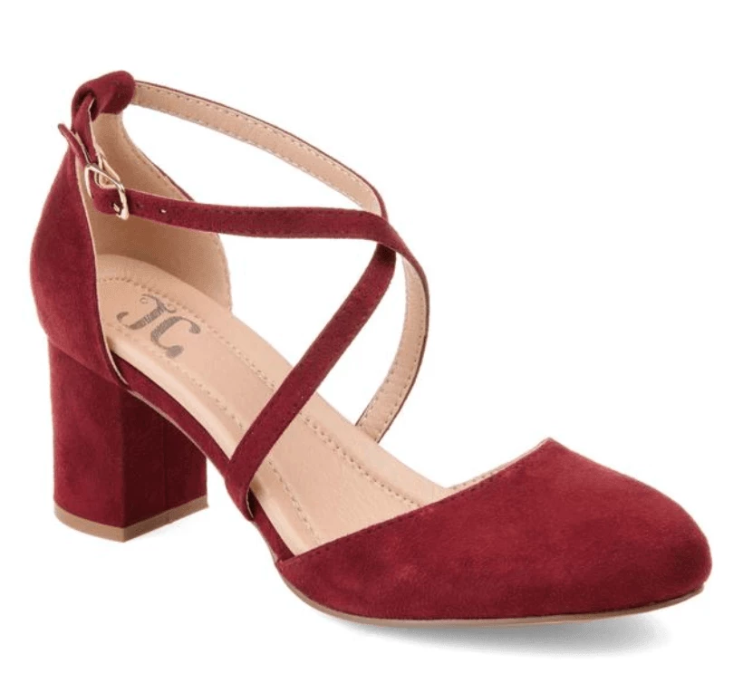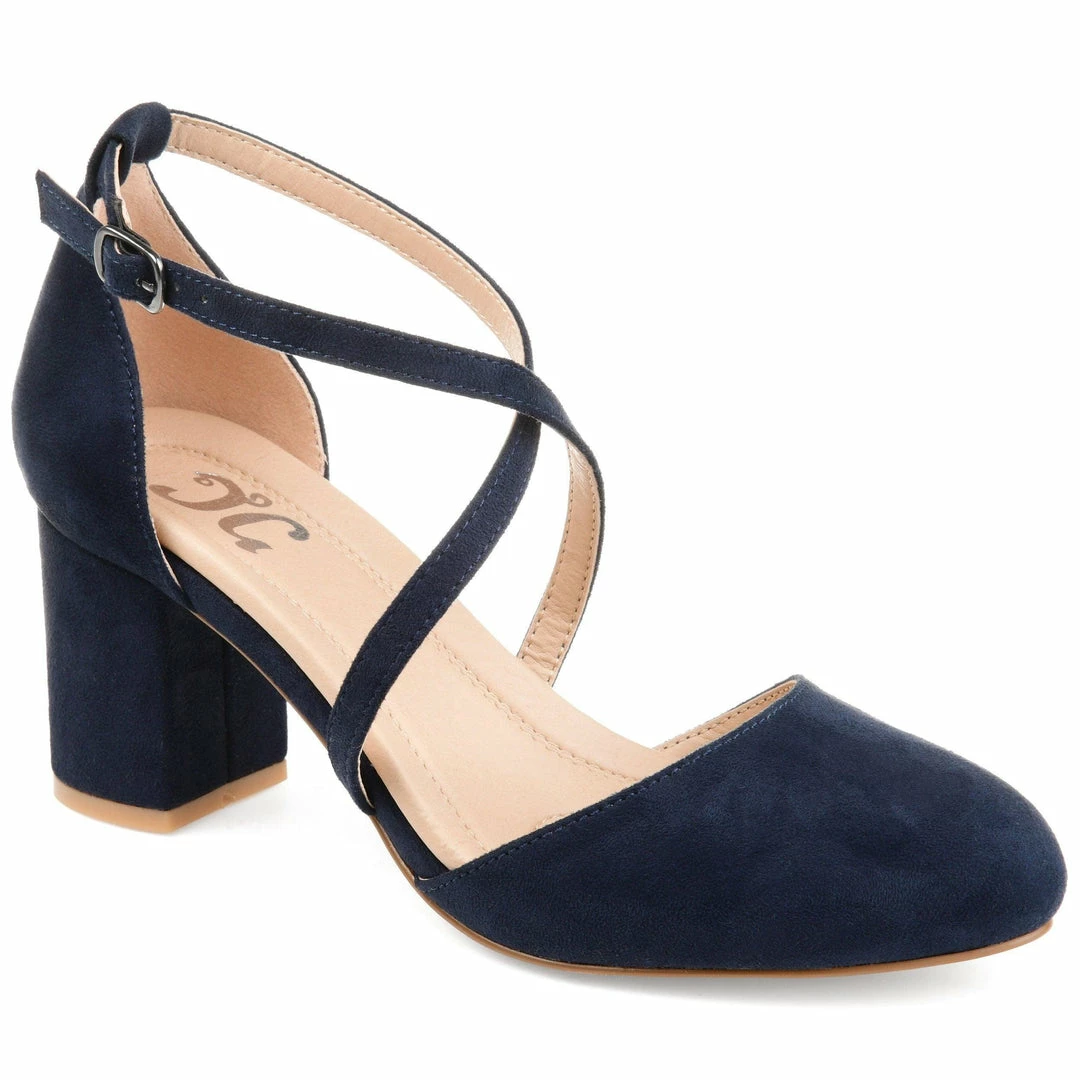 An impeccably designed d’Orsay made with buttery soft microsuede fastened with slender crisscross straps and a silver-tone buckle for a vintage vibe.