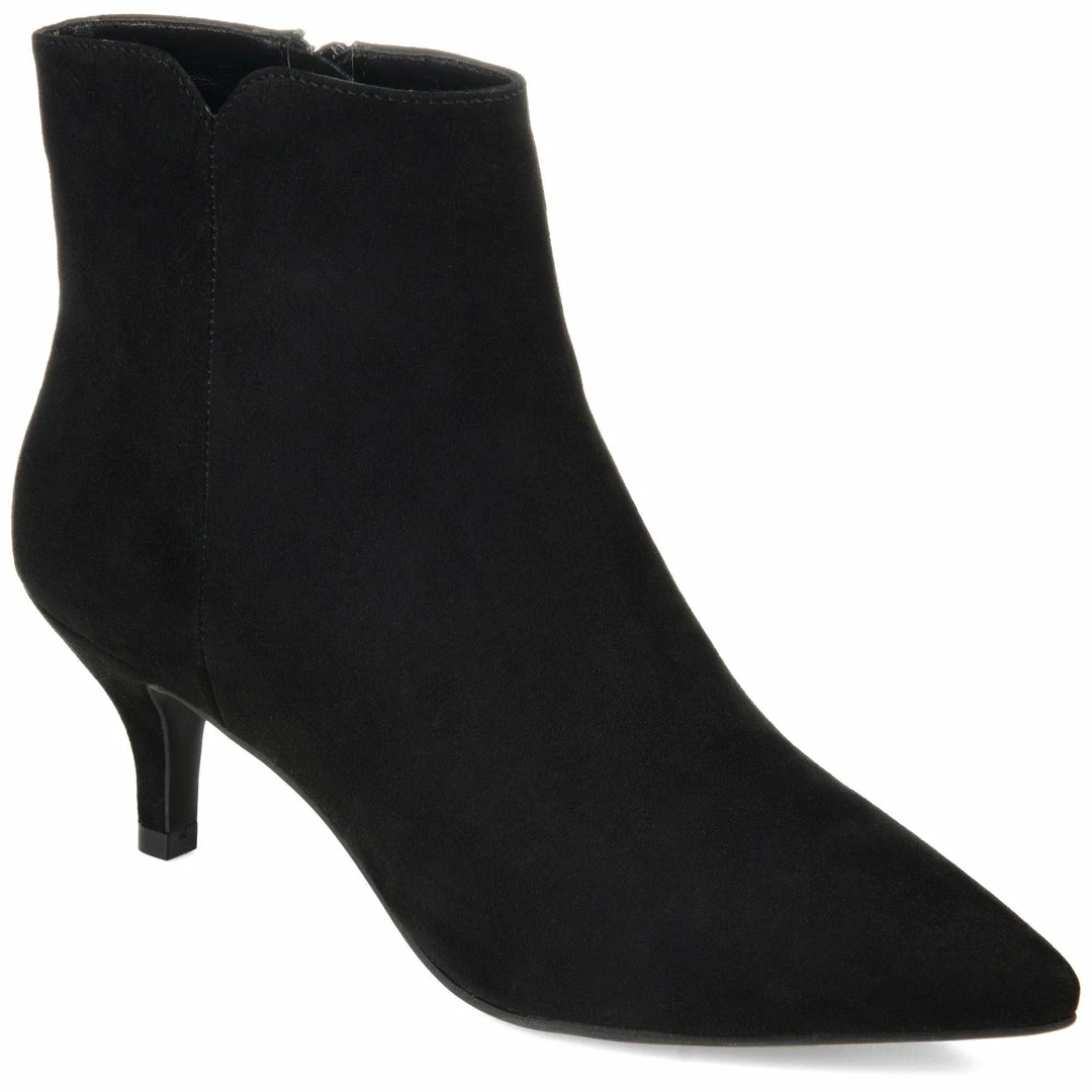 A dainty kitten heel elevates this pointed-toe bootie rendered with supple vegan leather. A notch at the topline and smooth zipper entry finish the look.