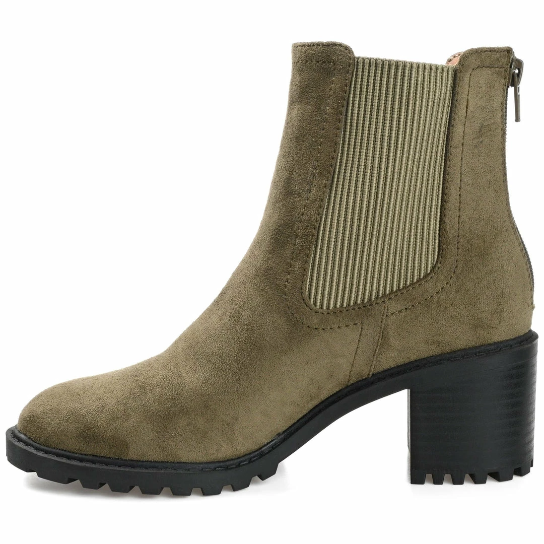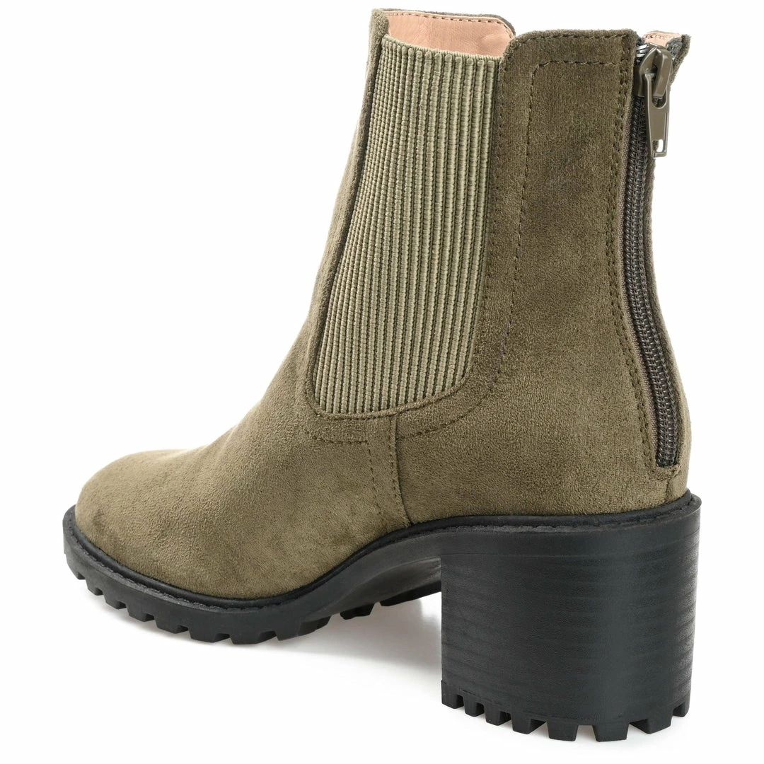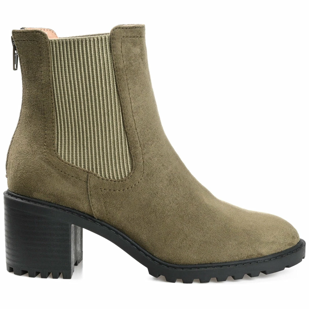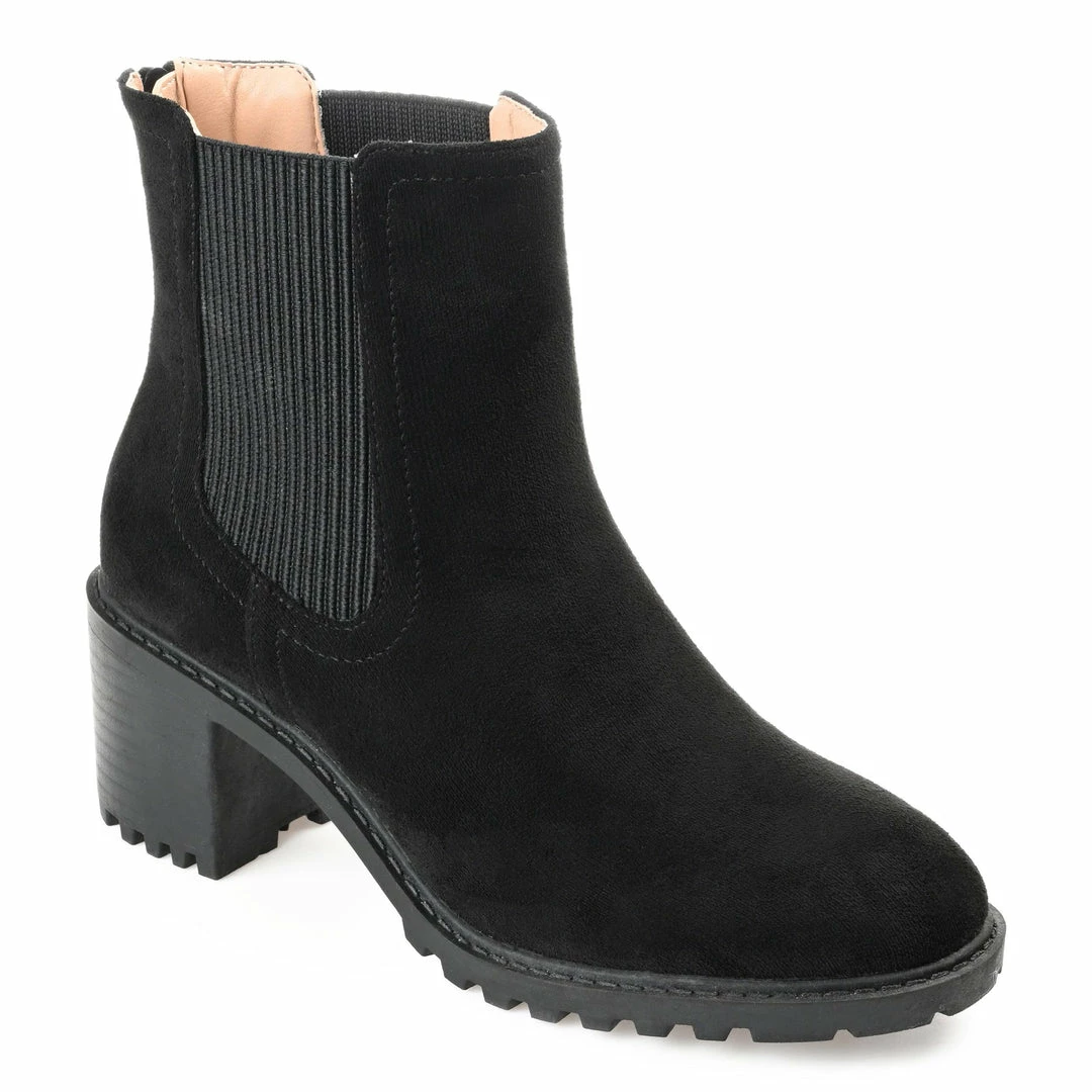 With a treaded sole and a lofty block heel, this style isn’t your ordinary chelsea bootie.