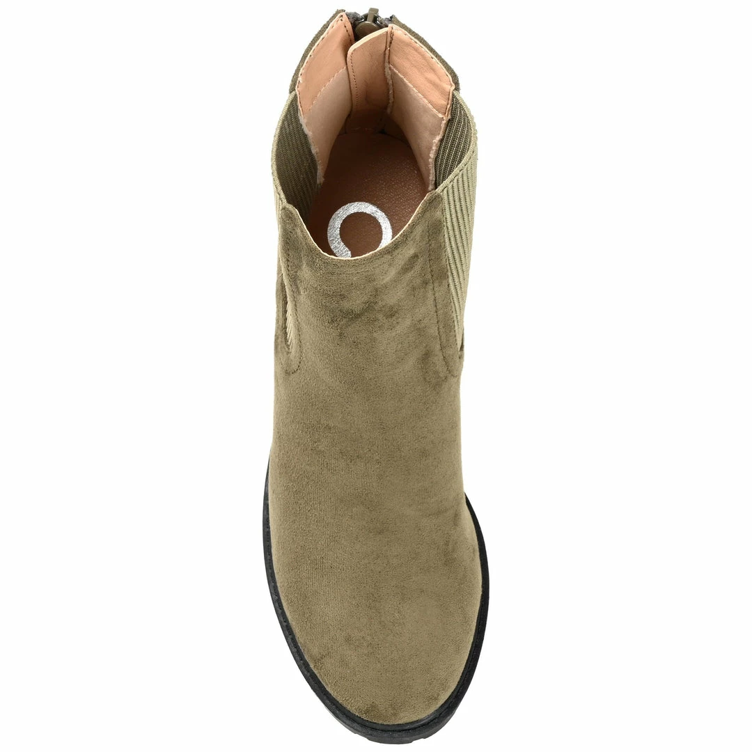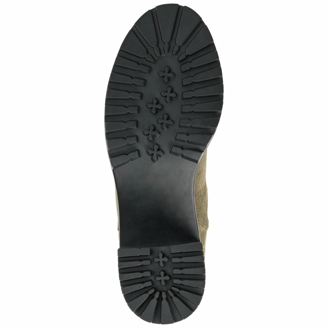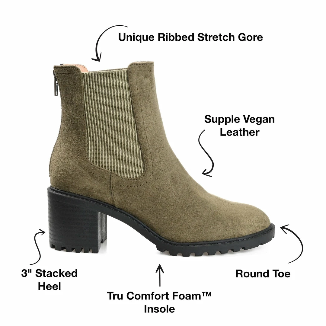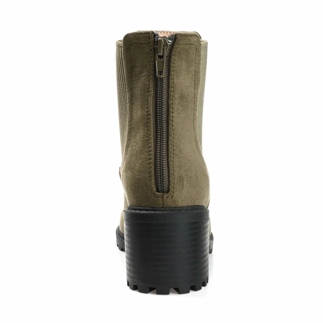 With a treaded sole and a lofty block heel, this style isn’t your ordinary chelsea bootie.