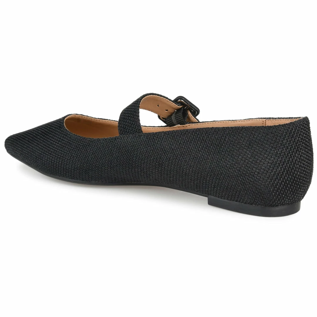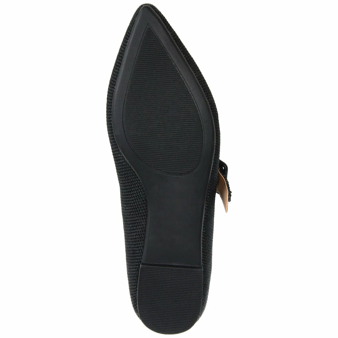 Add a bold print to your wardrobe with these pointed-toe Mary Janes rendered with retro printed fabric uppers and a padded footbed.