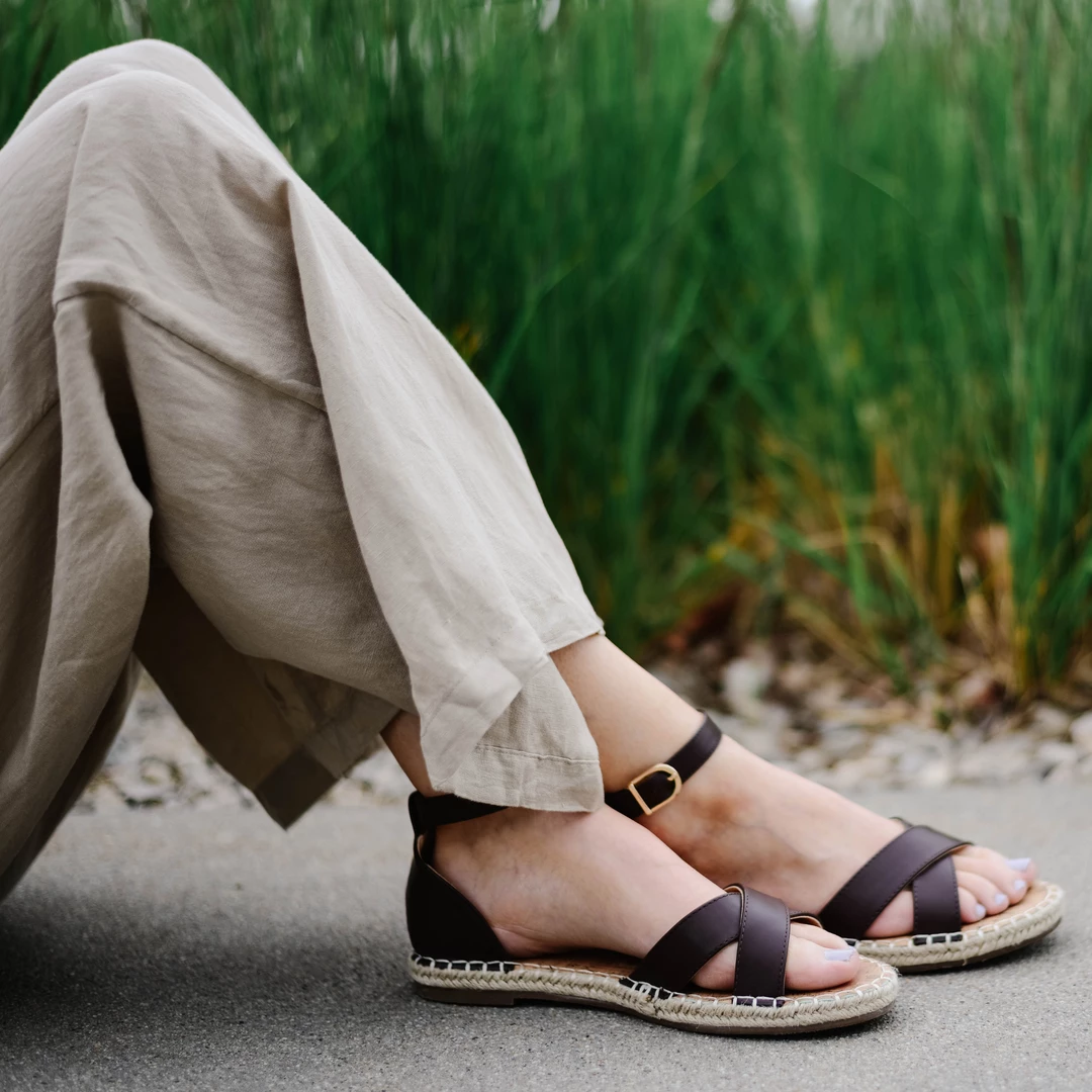 What’s flirty, fun, and wrapped in espadrille? Why, it’s our vegan leather crisscrossed sandals of course!