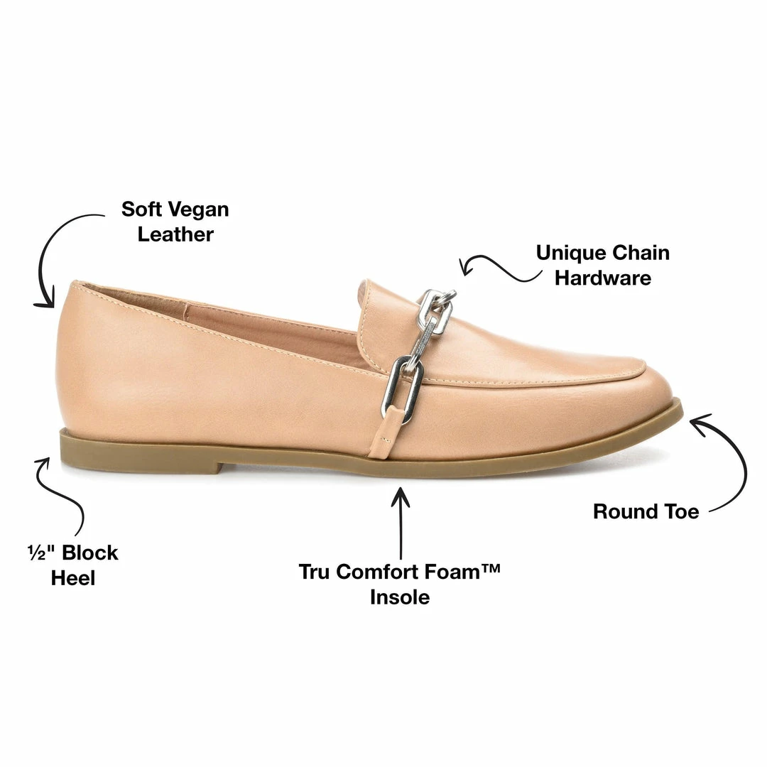 A fabulous loafer flat you can wear with a variety of looks, detailed with a bold chain at the vamp.