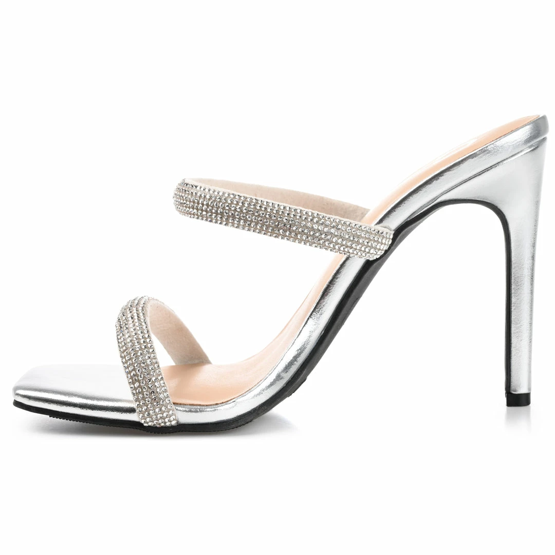 This rhinestone-covered strappy stiletto will undoubtedly become the focal point of your ensemble.