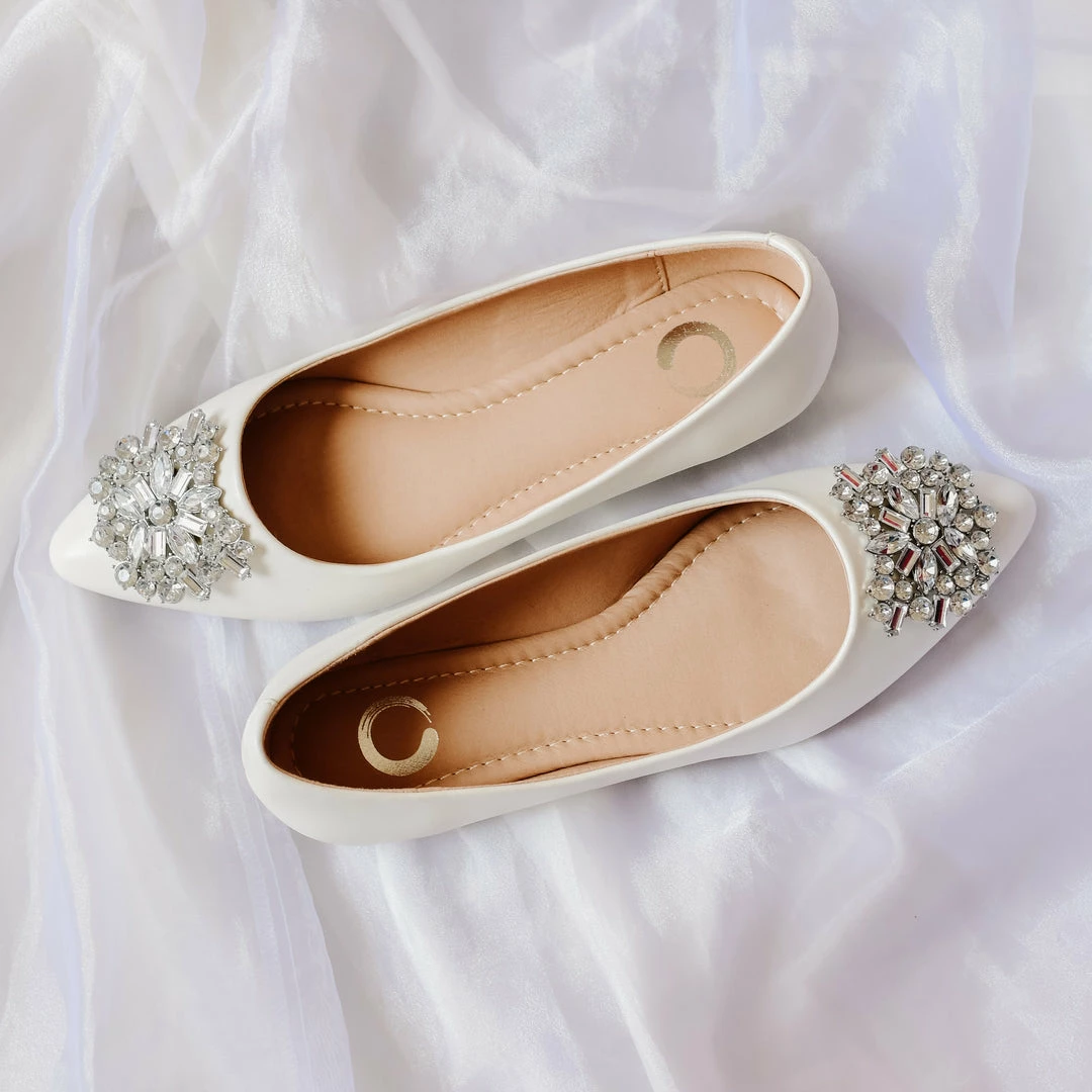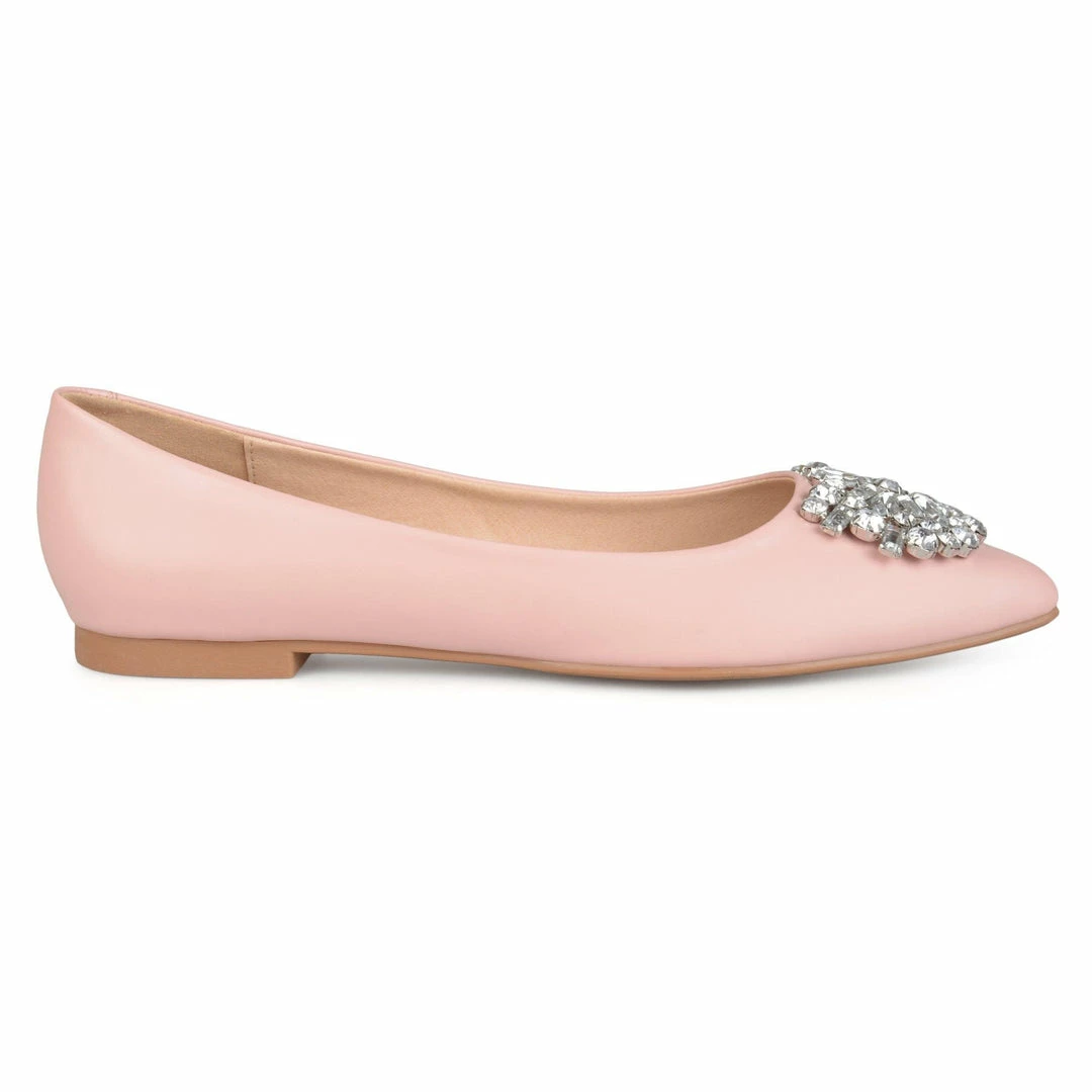 All glitz and glam! These pointed-toe flats are crowned with a gemstone cluster that is sure to catch eyes in the best way possible.