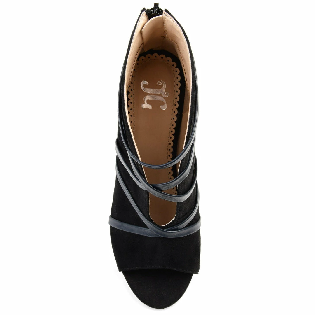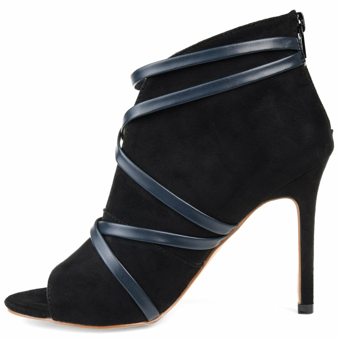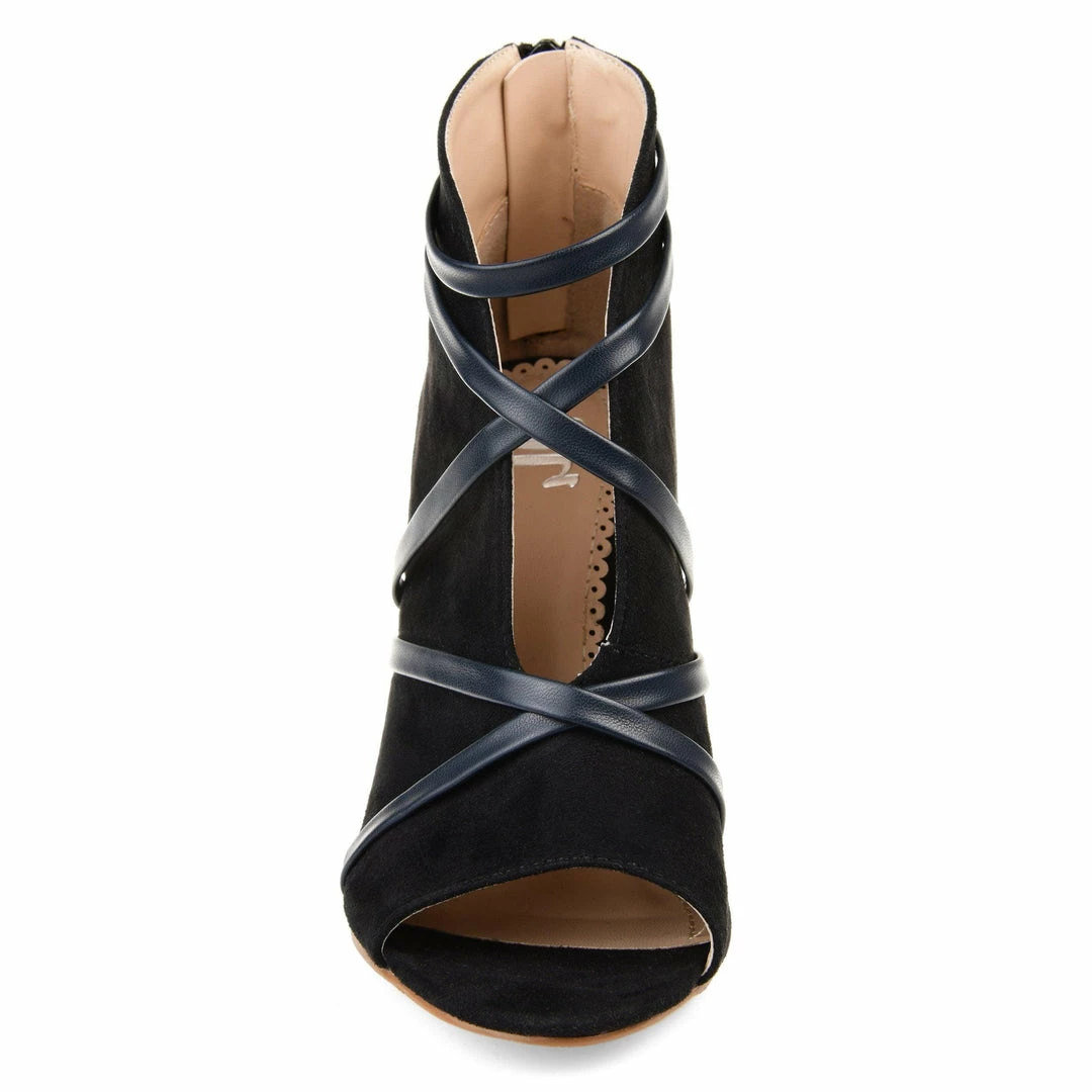 A crisscross strap wraps around this deeply notched peep-toe bootie mounted on a stiletto bootie for an alluring finish.