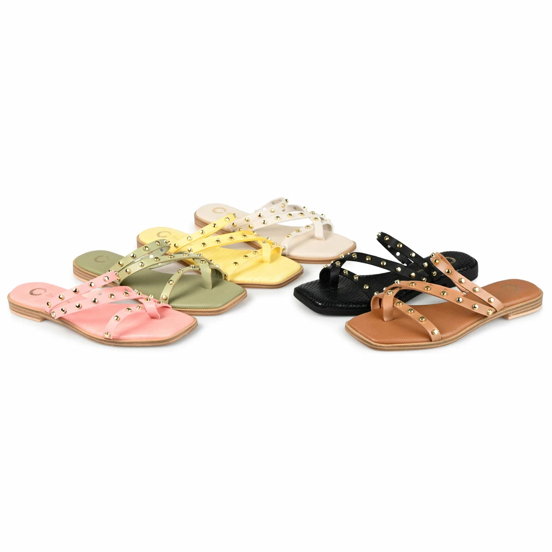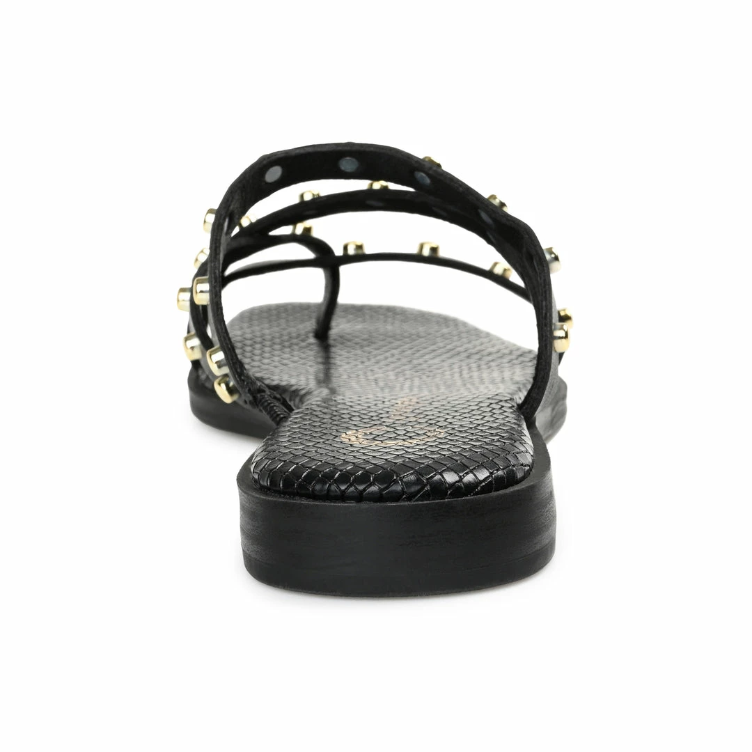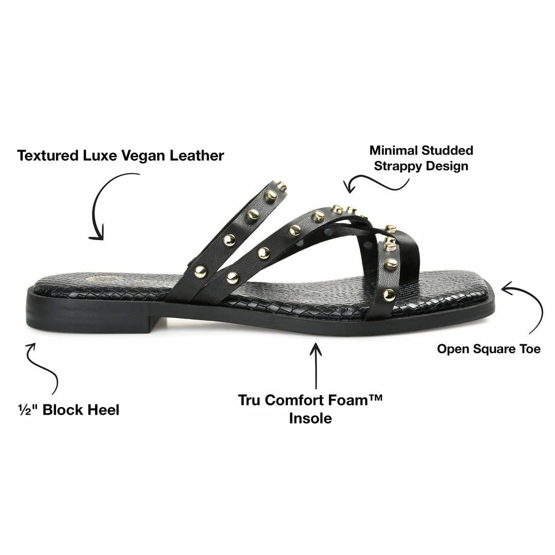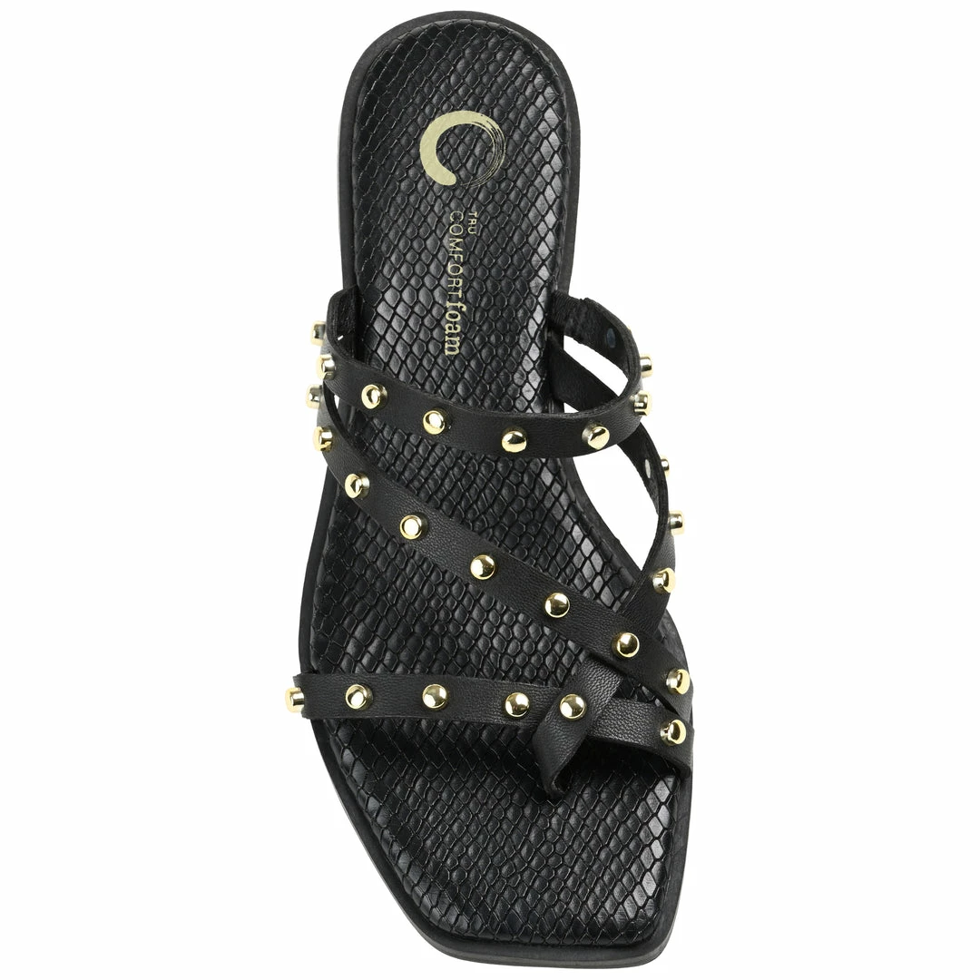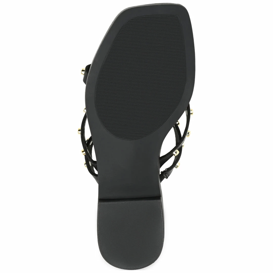 Add some edge to your summer ensembles with this studded multi-strap sandal.