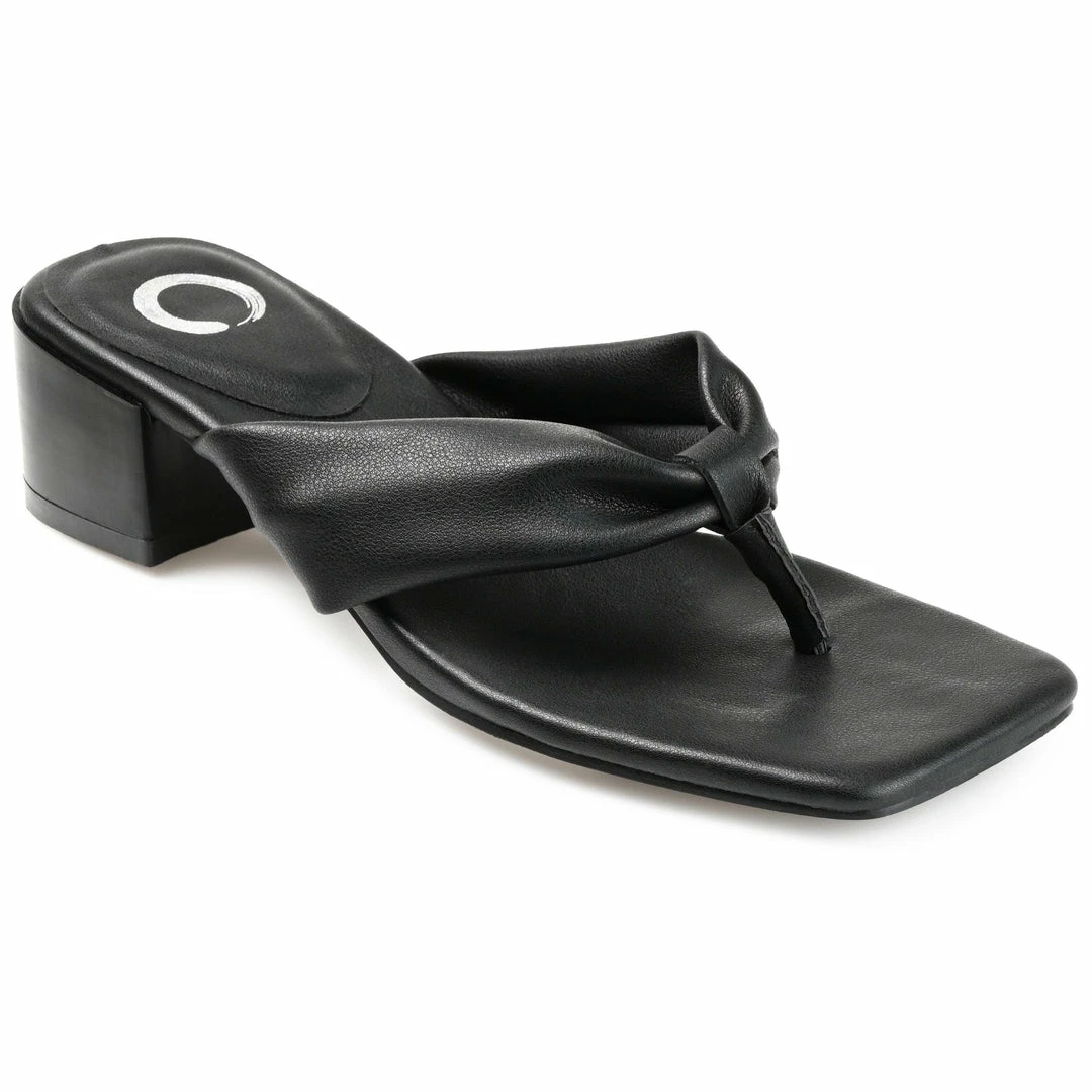 This chic take on the flip-flop features a square-toe and a stacked block heel.