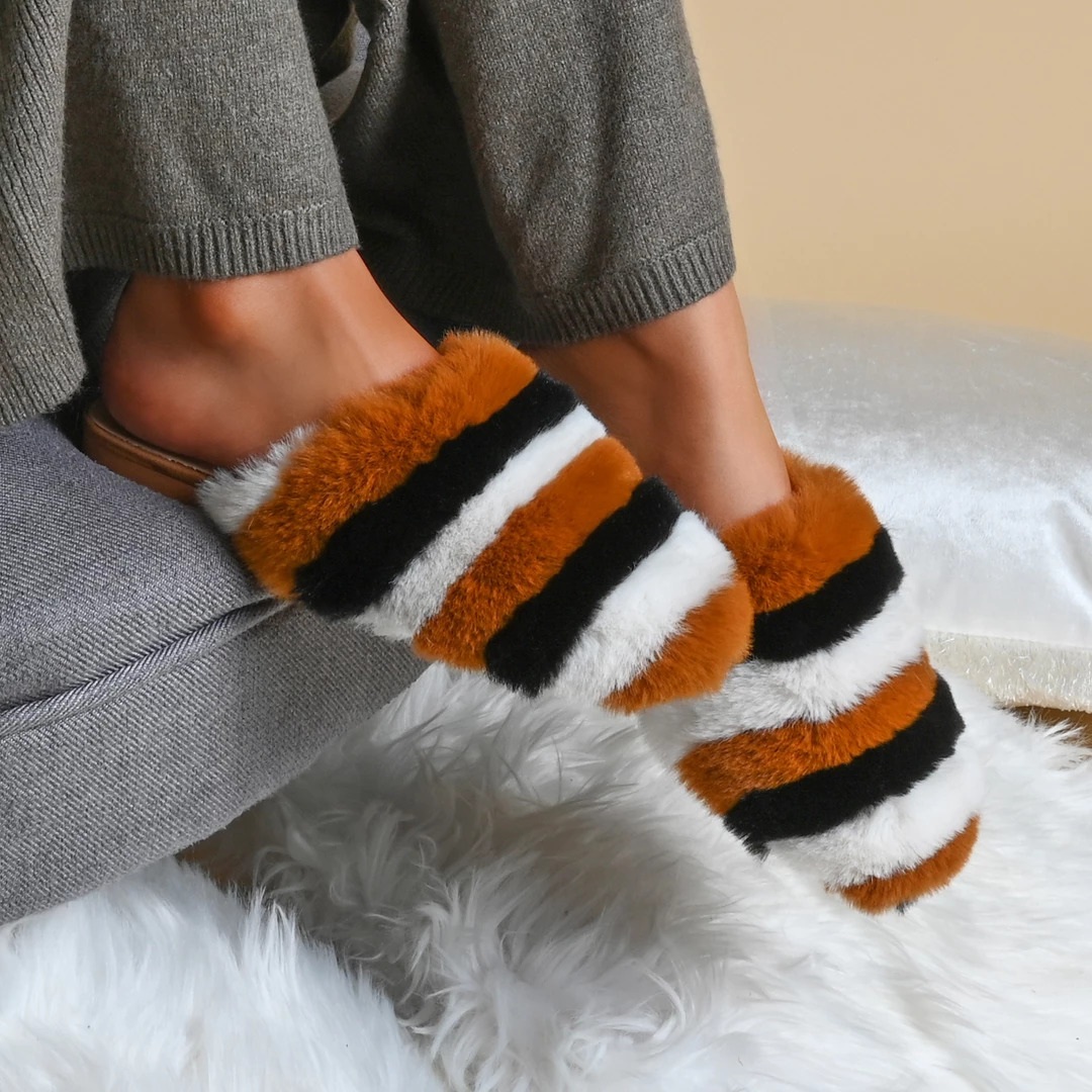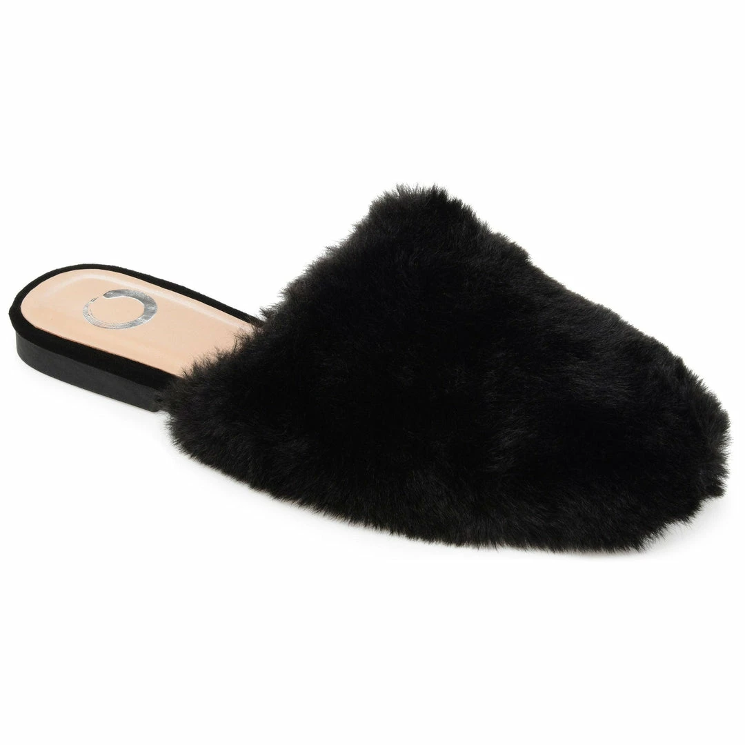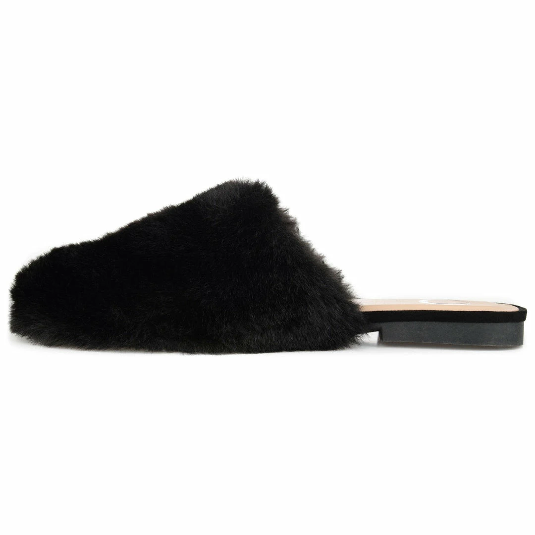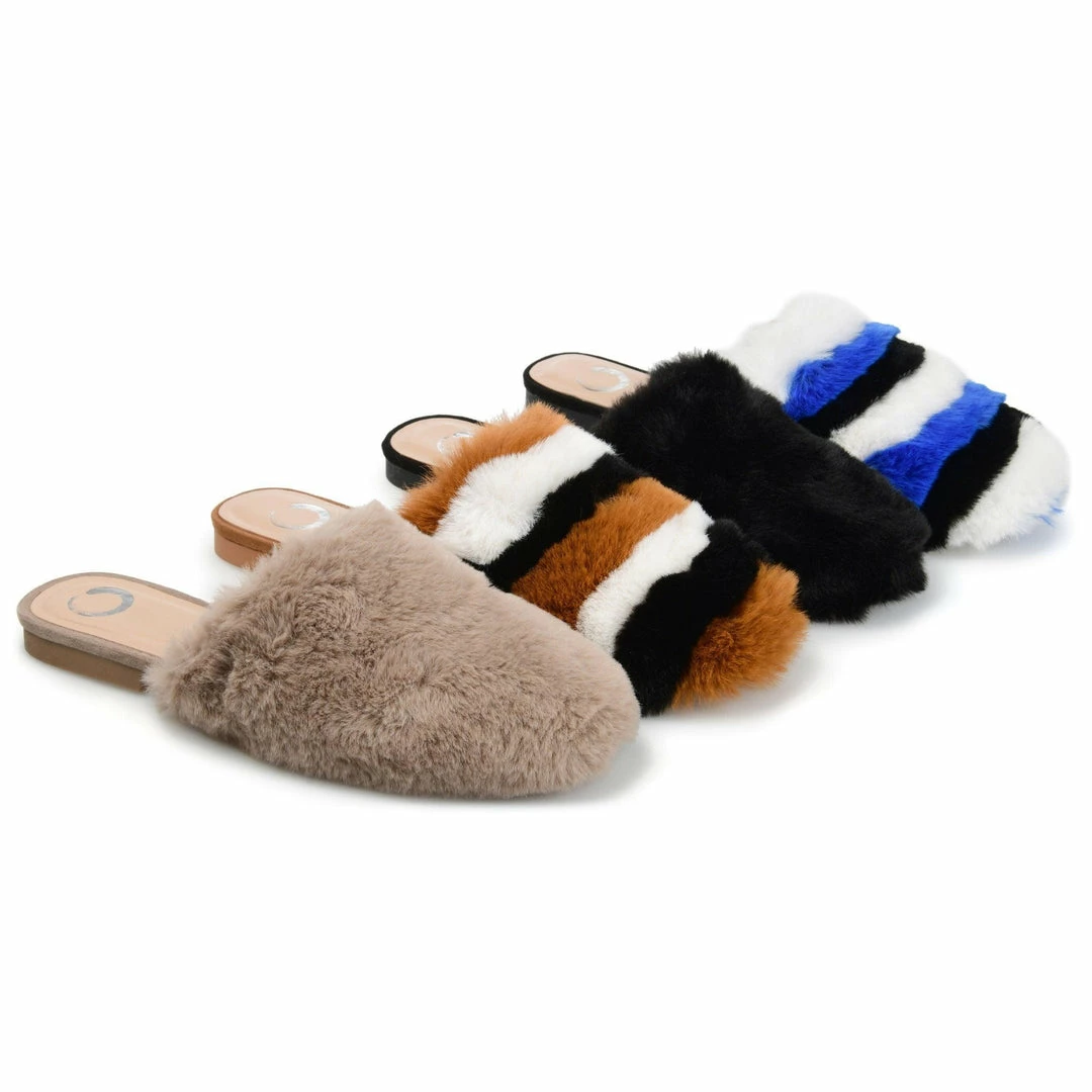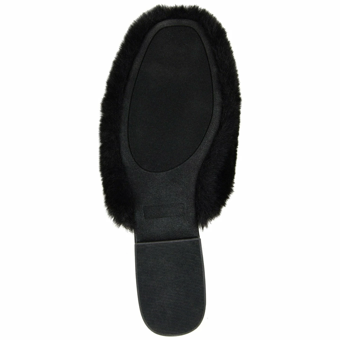 In the mood for a dramatic look? These sassy square-toe mules are detailed with plush fur uppers and a padded footbed for a comfortable fit.