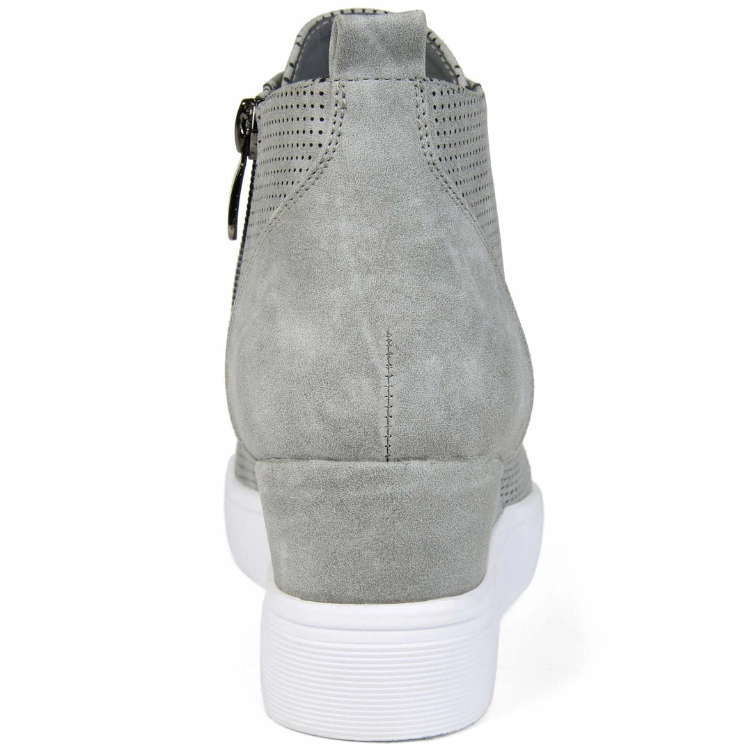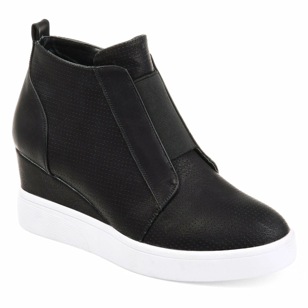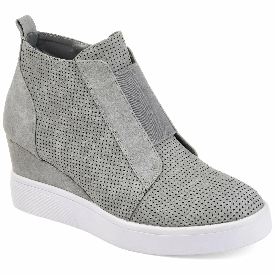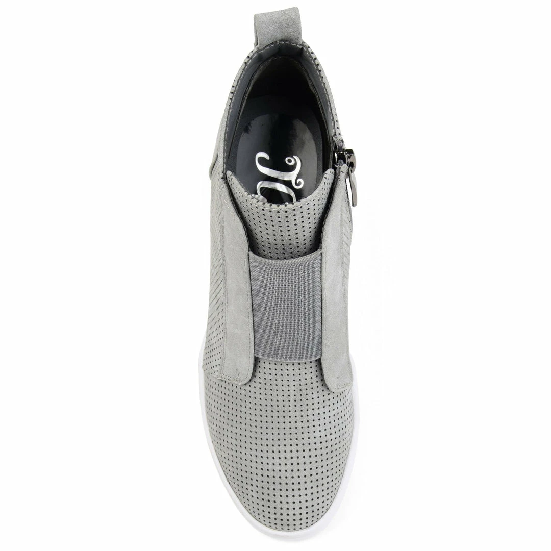 Kick-back in these cool wedge sneakers covered with pinhole details. A stretch detail at the vamp and a padded footbed finish this soft vegan leather design for a zero fuss look.