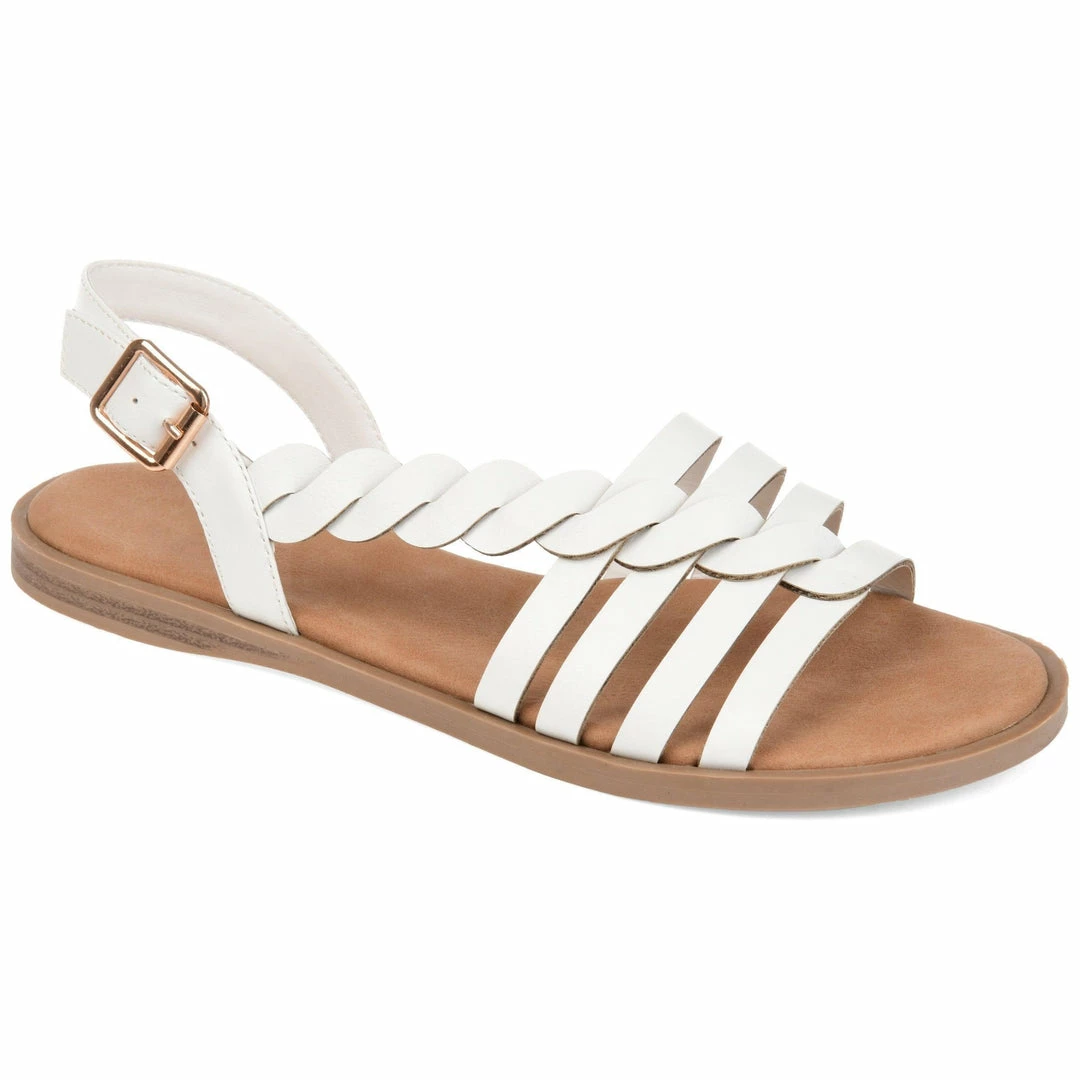 A slip-on sandal cleverly embellished with a braided accent woven through a quadruple toe strap design. This warm-weather look features vegan leather uppers lined with a cloud-like cushioned footbed for all-day comfort.