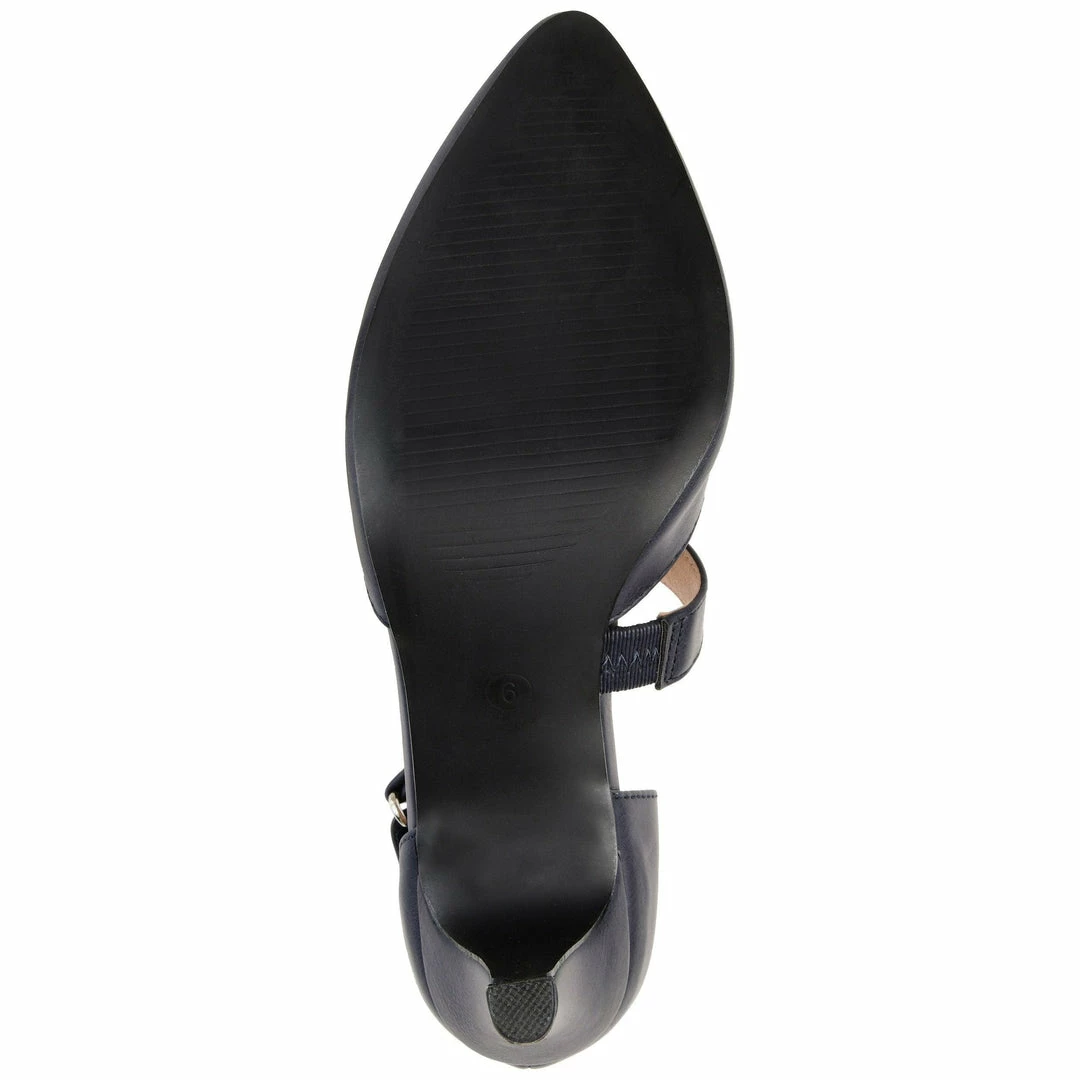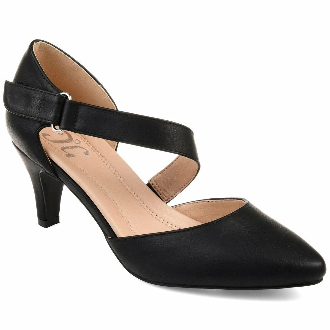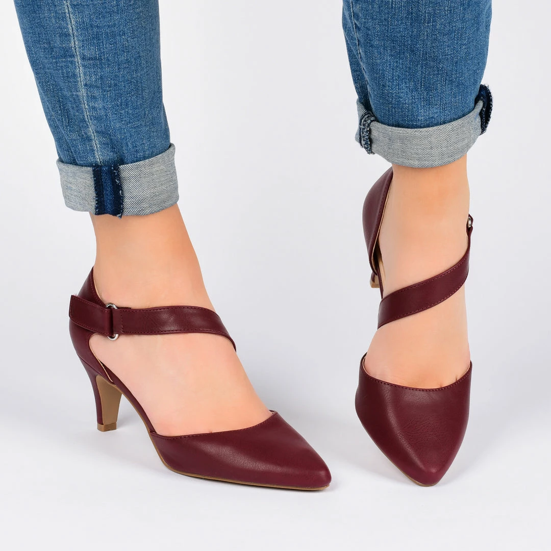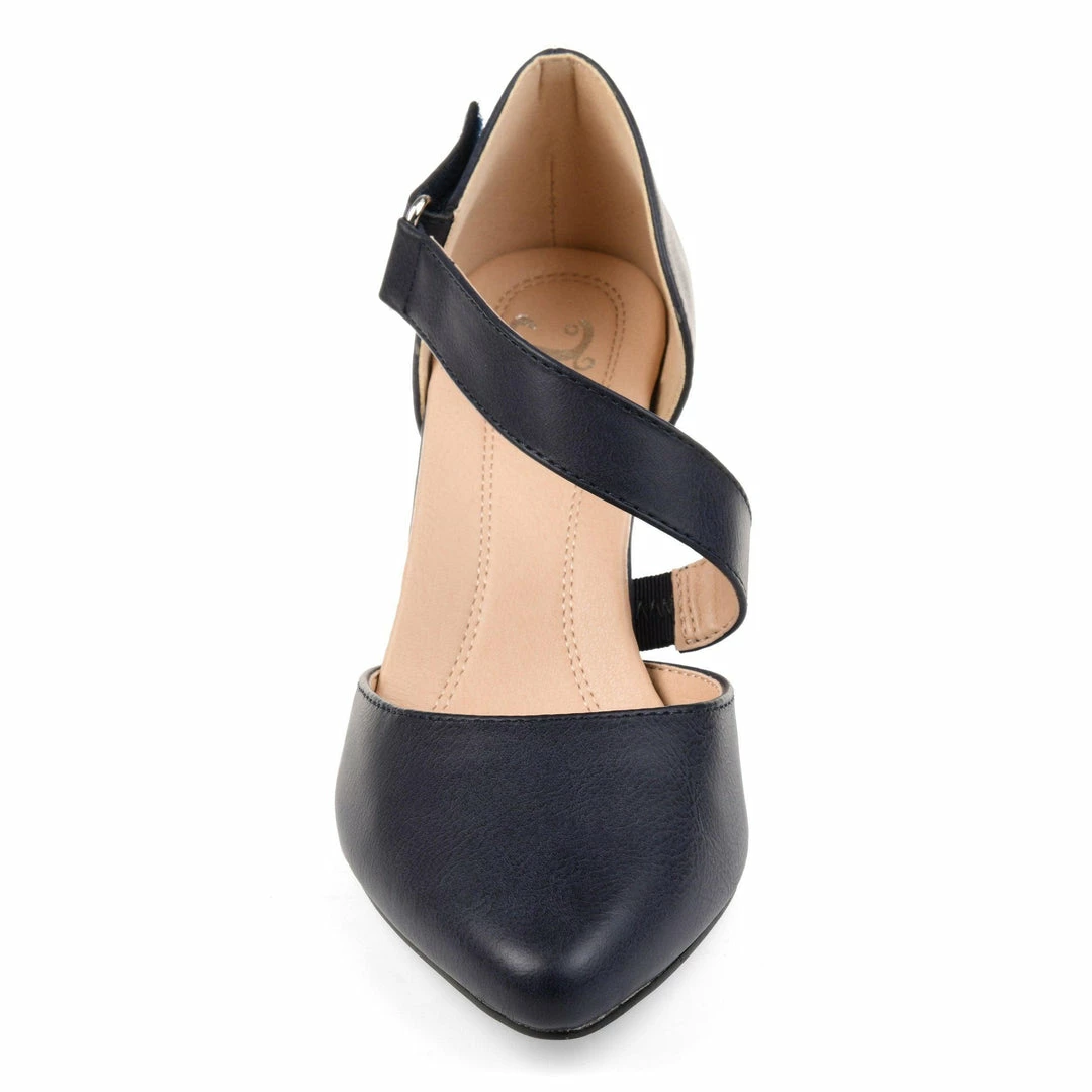 A classic pointed-toe d’Orsay pump detailed with an asymmetrical strap for a modern touch. This essential design is finished with quality vegan leather, an adjustable belt-loop closure, and aย 4 mmย Tru Comfort Foamโข insole to make them easy on the feet.