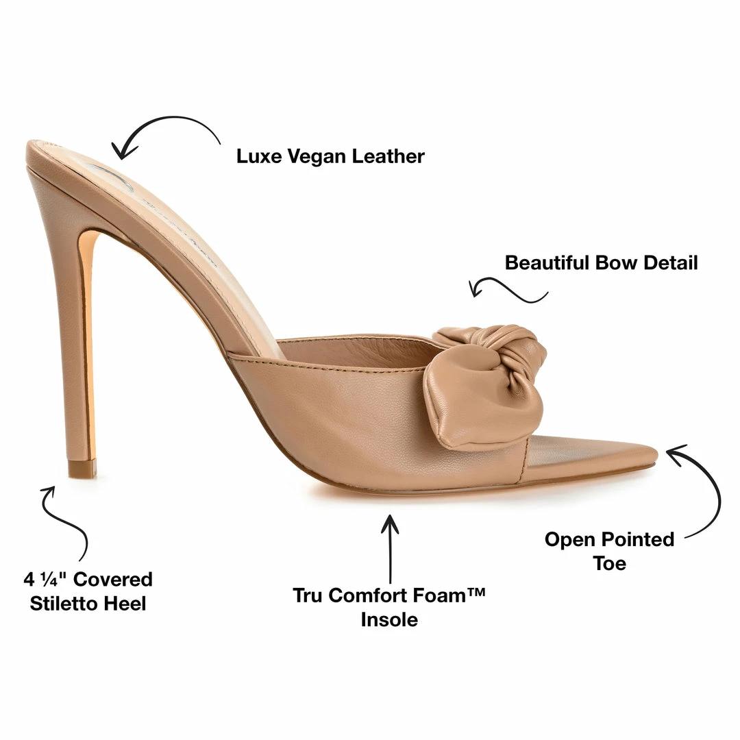 This slide-on heel with a darling bow accent is perfect for special occasions.