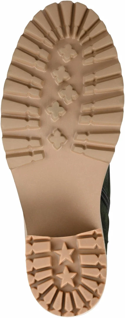 Take a leisurely walk down memory lane in these vintage combat booties crafted with genuine leather and a stacked block heel.