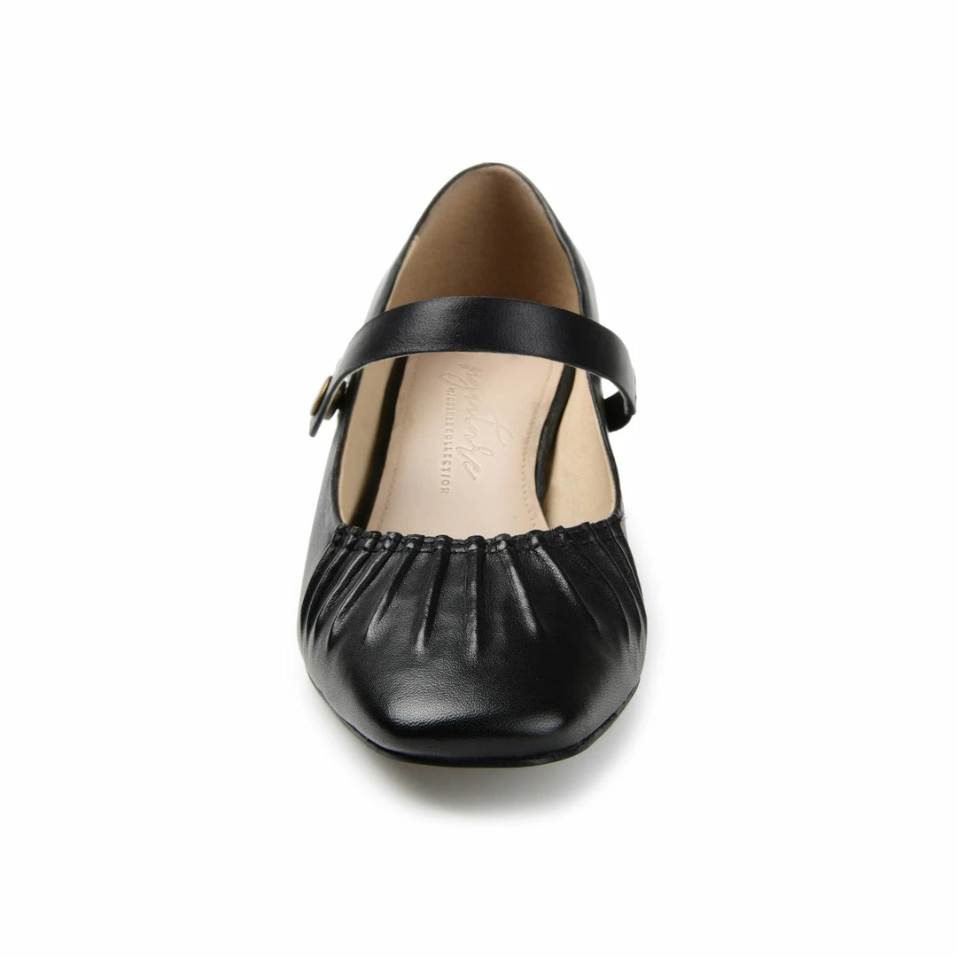 This mary jane is classically chic and infinitely wearable with genuine leather uppers, and a darling button on the strap.